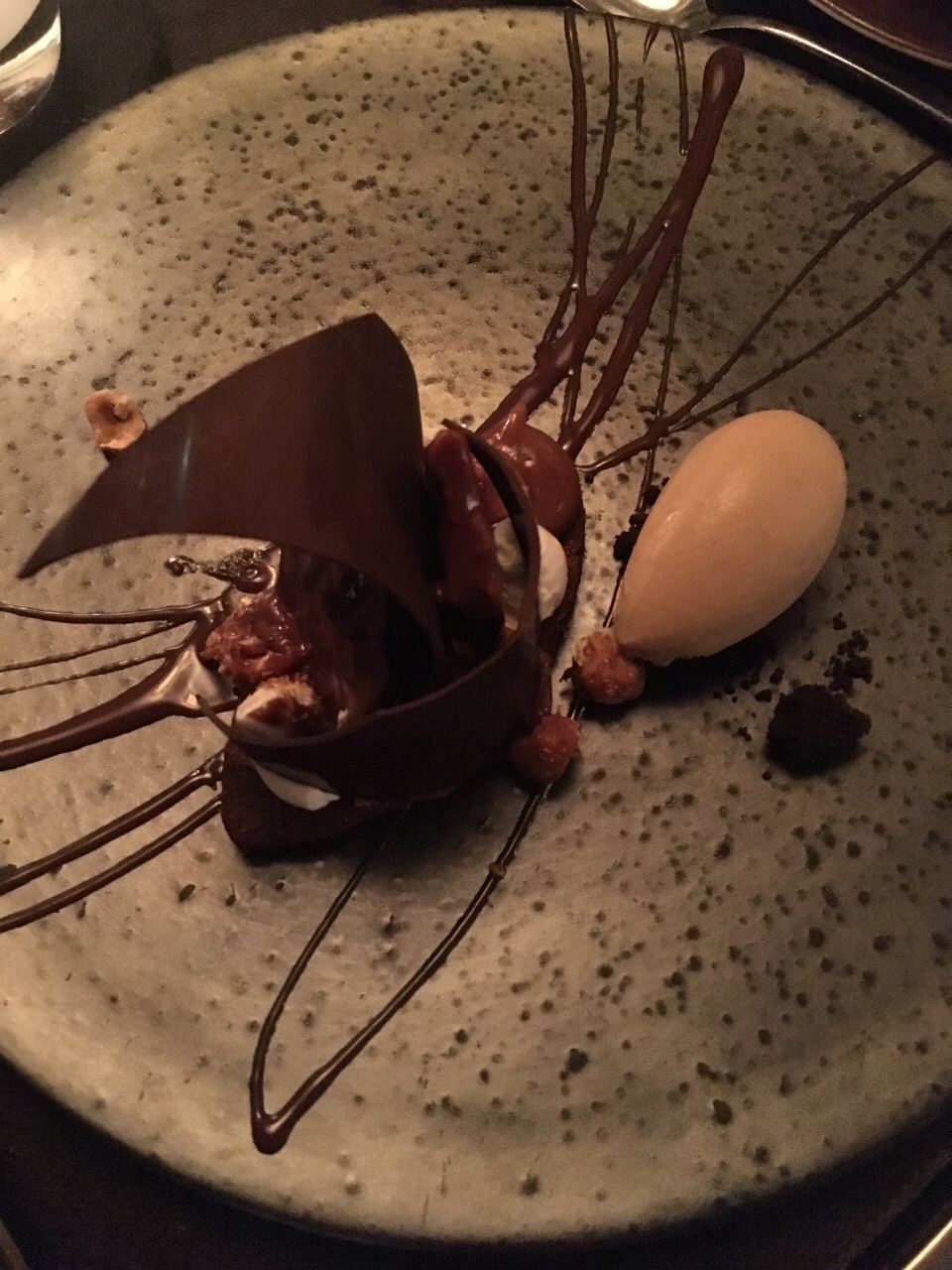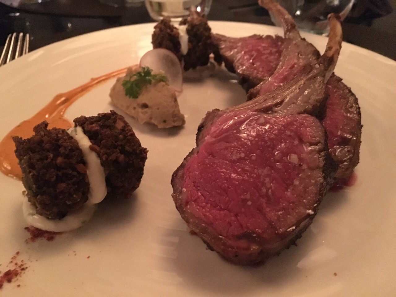 不愧为米其林二星餐厅,前菜点了半打生蚝,新鲜美味,主菜要了半熟的羊排,没有任何担心的羊骚味,口感很嫩,顿时感觉很温暖。相比于主菜而言,更加令人惊艳的是甜品,热情果汁的舒芙蕾,刚刚出炉的芳香加上酸酸甜甜,味蕾各种起伏变化,好!此外,服务也是可圈可点的一流水平,贴心而又周到,细致又殷勤。最后,这家位于比利佛山的餐厅还是各路明星的最爱哦。关于主厨的部分可以度娘。