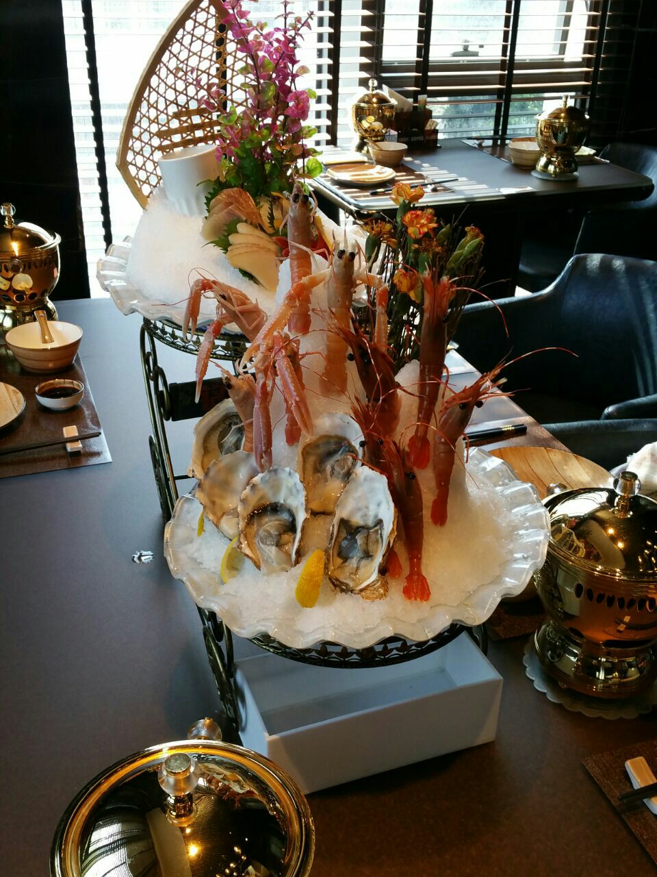真的令人耳目一新的海鲜主题自助餐,装修有档次,陈列冰雕有新意,每人一个小锅可以让不吃生的自己涮。海鲜品种多得尝不完,竟然还有人参可以自制海鲜人参汤,另外还可涮牛羊肉、煎各式肉扒。少有自助餐是有如此多的饮品,红酒、葡萄酒、鸡尾酒、罐装啤酒和汽水、鲜榨果汁、椰青任喝,雪糕是哈根达斯的。这里是非常有诚意的高端自助餐!