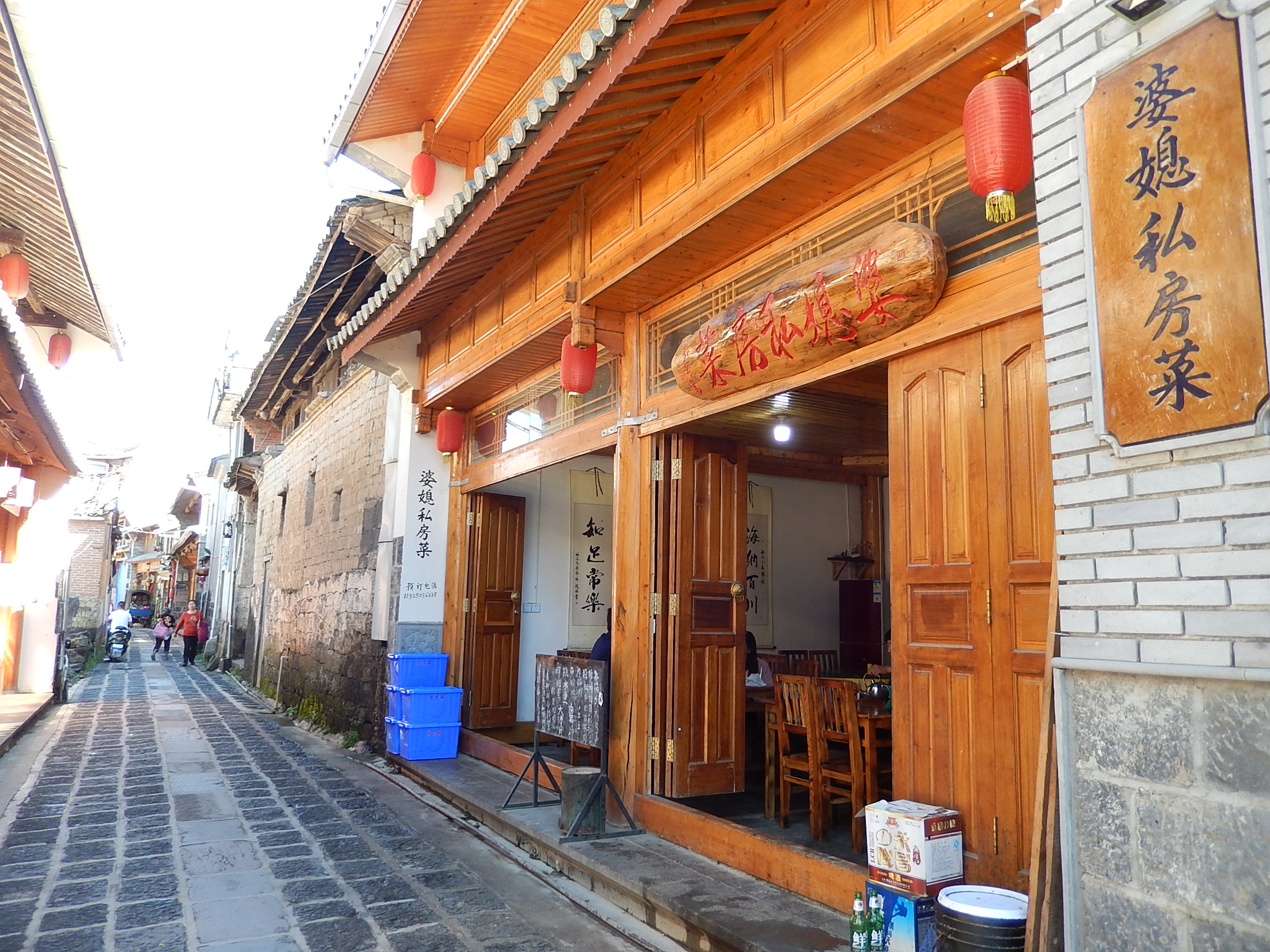 这家餐馆在和顺古镇景区内,进古镇过牌坊后沿着最右边的那条路走,就是去往妈妈的味道和千手观音古树群的那条路上,经过寸氏宗祠,在尹氏宗祠不到一点的地方,就是他家了。从和顺古镇大门口开始走,大约7-8分钟就能到达。 我们住在婆媳私房菜隔壁的九间房客栈,客栈里的人推荐了去他家吃,是当地人的馆子,所以口味和很多在当地吃的云南菜一样,偏咸,但是价格实惠,土锅子差不多是70-80元一锅。吃饭时老板还会来和你聊家常。 【土锅子】是和顺的经典菜,最好提前预订,我们去时晚了,老板说只剩最后一点食料了,凑一凑给我们尝个鲜。土锅子里面有肉皮、肉丸、蛋饺皮包肉等,分量十足,有人觉得土锅子有点腻,我觉得味道挺鲜的。 【大救驾】感觉就是炒饵块,管饱,不需要另外点主食。如果是两个女生的话,土锅子加大救驾,最多再要一份素菜,一顿饭就吃得很撑了。