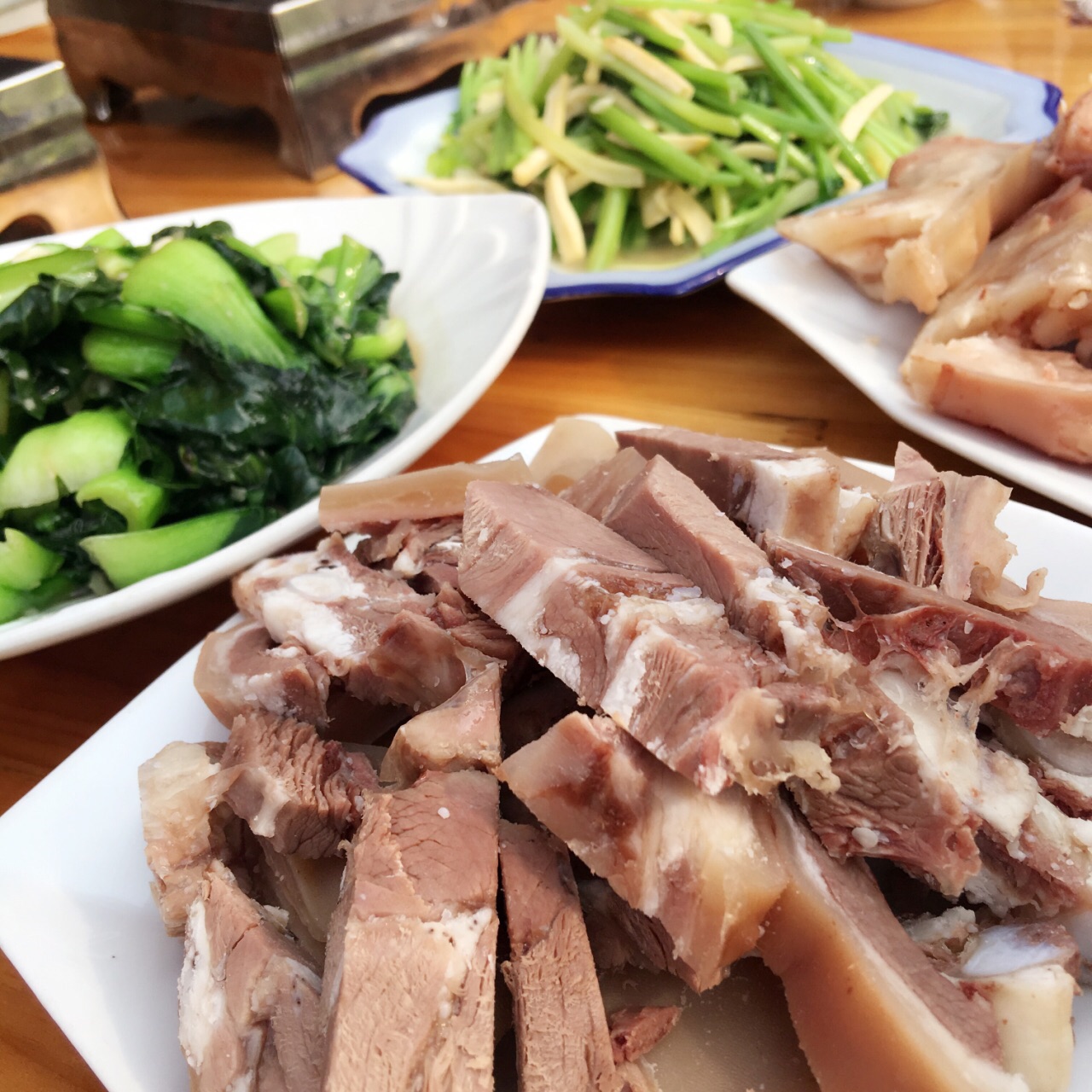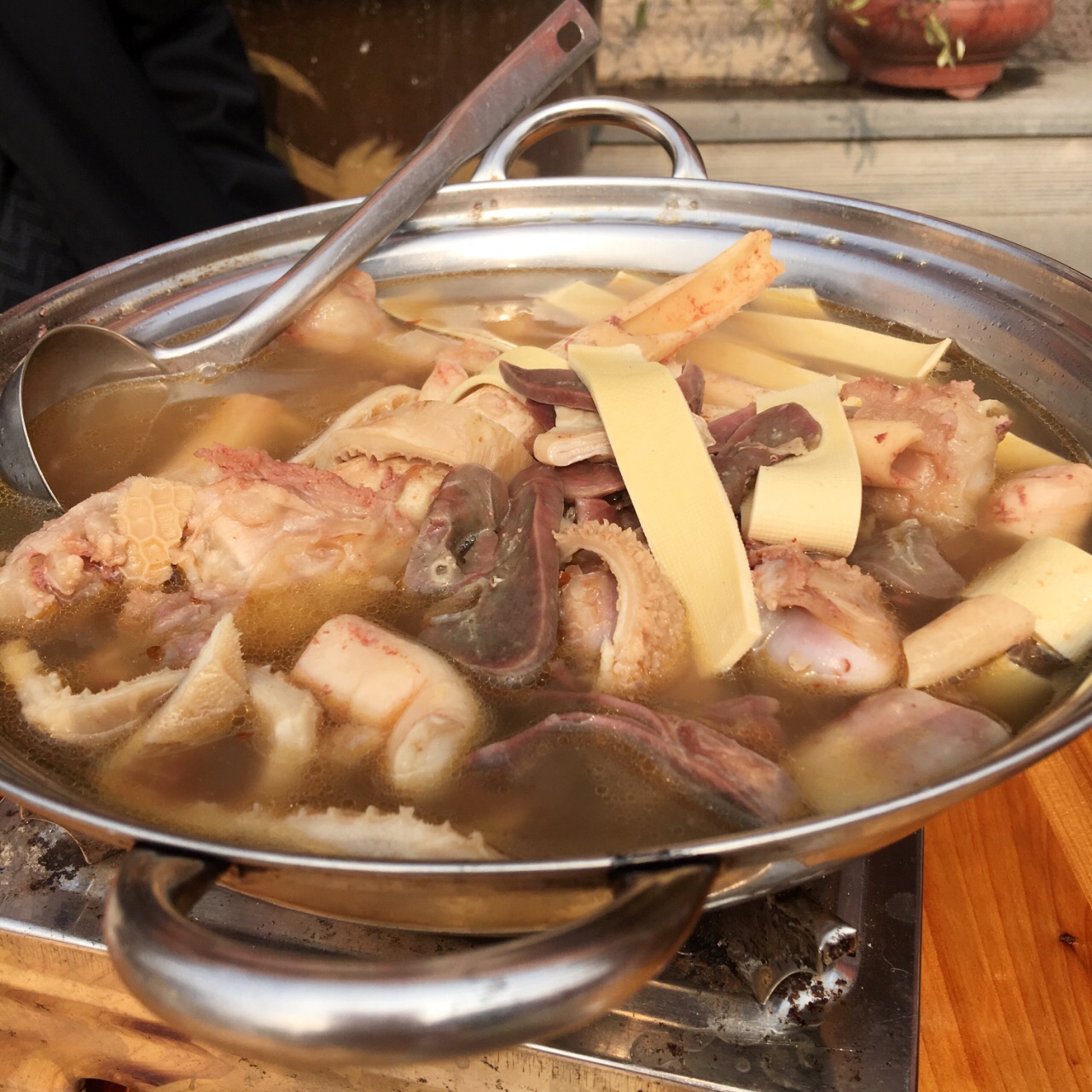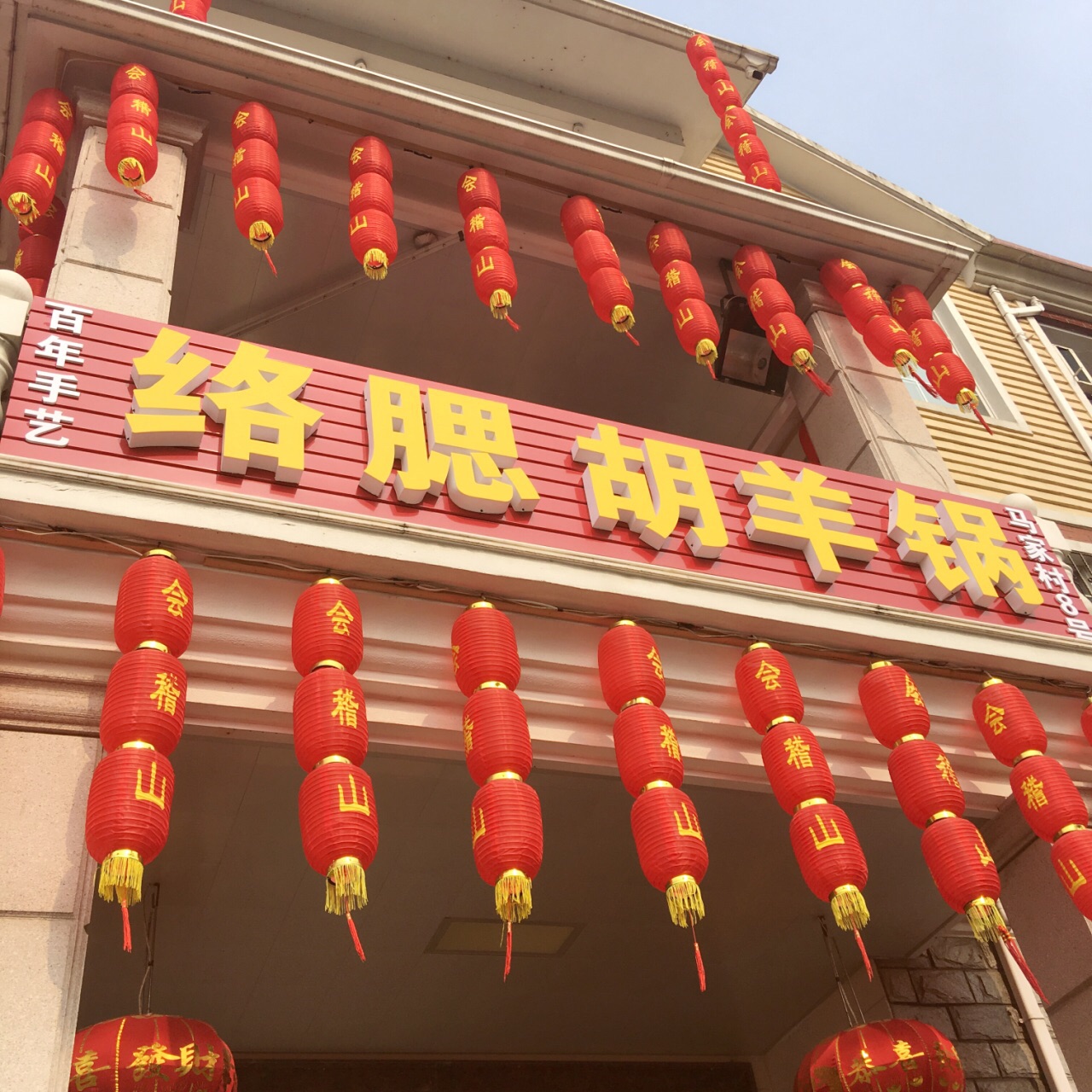 家里长辈早就想来新羊锅村,真没想到这么快就组团来了^_^。 新羊锅村距离主城更远一些,规模变小,但是门口就有一个停车场了,周边还有一些池塘,里里外外挂红灯笼,感觉不错。 这家店铺相对里面,但是环境非常不错,干净整洁,有好几个大的包厢。错峰来的,顾客不多,太阳又好,大家选择坐在外面,感觉惬意。 老板热情,刚到就上瓜子茶水,明明是个小的套餐,给的份量却超级足,蔬菜任选,一行5人,竟然只加了份羊肝,次了味道都蛮好的,非常新鲜,个人最最喜欢羊肉。尝了店家自酿米酒,味道香甜,买了几瓶打包带走。 新羊锅村为了环保,不能烧烤,比较遗憾,特别想次烤羊排啊、烤肉串啊。