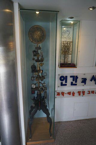 在沙漏公园的旁边,仅靠大海,这里有个火车造型的博物馆,时间故事博物馆就建在这列车里面,很有意思,主题也贴合正东津。博物馆不是很大,需要购买门票入内,门口还有兜售纪念品和明信片的,入口处的摆钟也是极其富有特色。