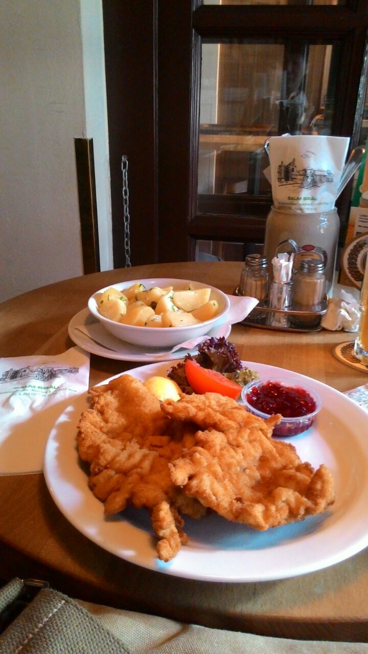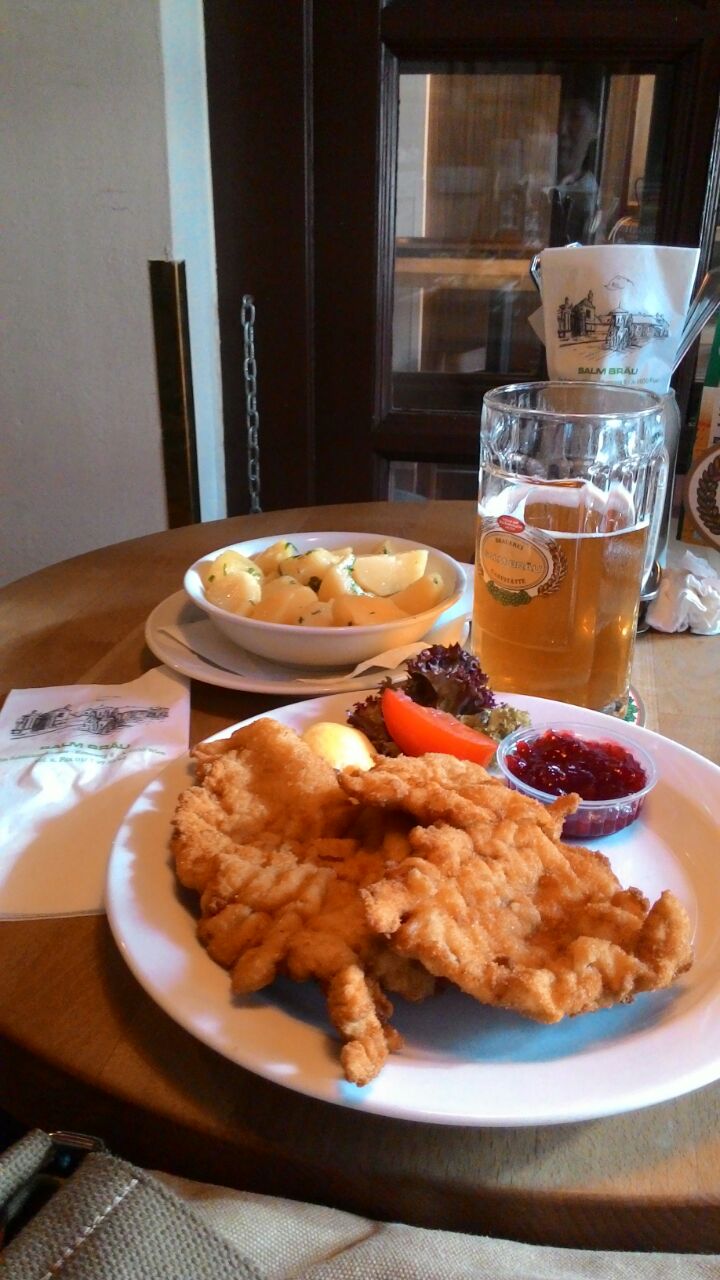 网友2017-01-14啤酒是自制,水果啤酒加炸豬排很美味,沒任何油垢味,很大一盆,一人吃不完在美泉宮附近,這里中午人很多,服務員很忙,等很久沒人來招呼。啤酒是自制,水果啤酒加炸豬排很美味,沒任何油垢味,很大一盆,一人吃不完