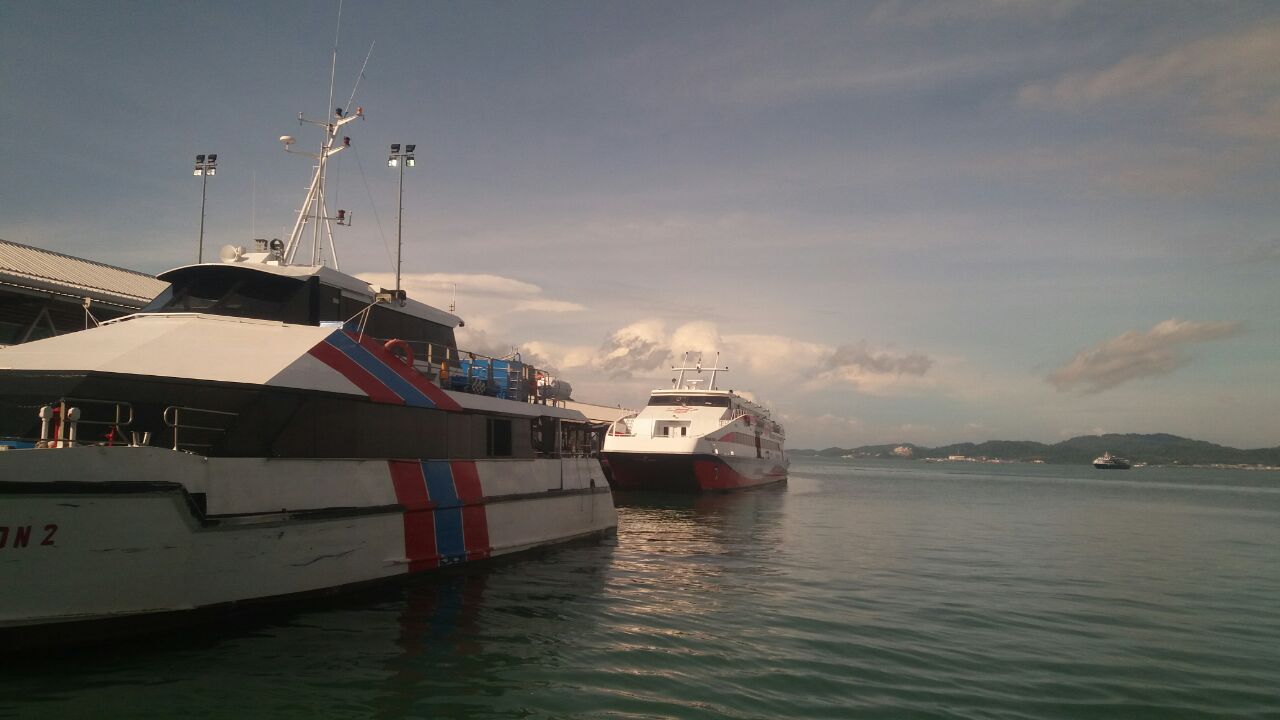这里是浮潜或者跳岛游的主要交通工具,这是很大的游艇,分成上下两层,非常的大,但是一般是在舱内,因为第一是路途很远,需要一个小时,而且整个的路程会非常的颠簸,我建议大家可以尽早预定跳岛游,有时候也是用的这个船。一般出发的码头就在瓜镇。这个码头周边也有很多的商业中心。码头旁边就是巨鹰广场。