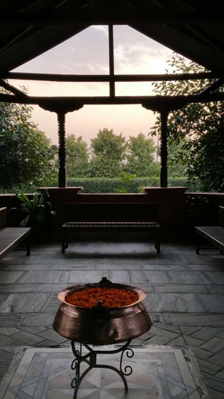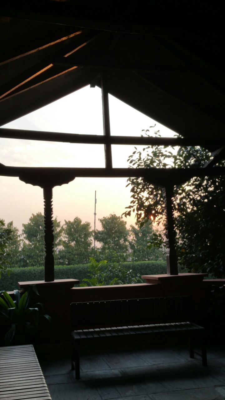 ...店就在这里,早上的日出非常美,周围农家的大象们迎着日出去国家森林公园上班了,很美的一片田园风光
