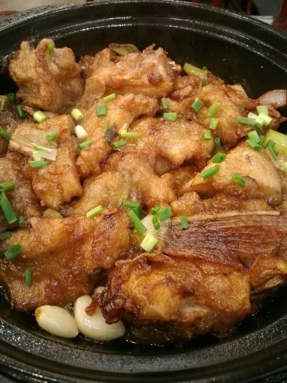 滨湖区世纪金源购物中心四楼大片餐饮区,巢湖渔庄的门脸是农家特色,显得别致。进门是点菜区,很多大砂锅,鸡鸭鱼肉都有,农家菜的风格,现场有制作豆腐皮,看着特新鲜,必须点一个。里面是大型农家院的格局,周围一圈包间,中间是大厅,氛围很适合家庭年夜饭,很喜气。飘香大鱼头是鱼头切成块,煎过再砂锅红烧,锅底衬的是一层大葱大蒜洋葱,很香,鱼头带肉都比较嫩,入味,无刺,略油。现做豆腐皮配上新鲜青菜炒在一起,清爽可口,豆皮滑嫩兼有韧性,有嚼头。服务一般。
