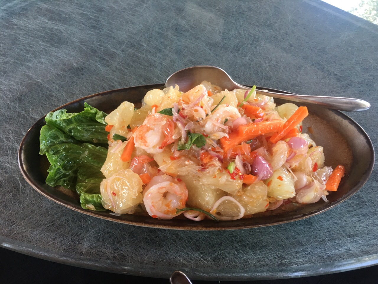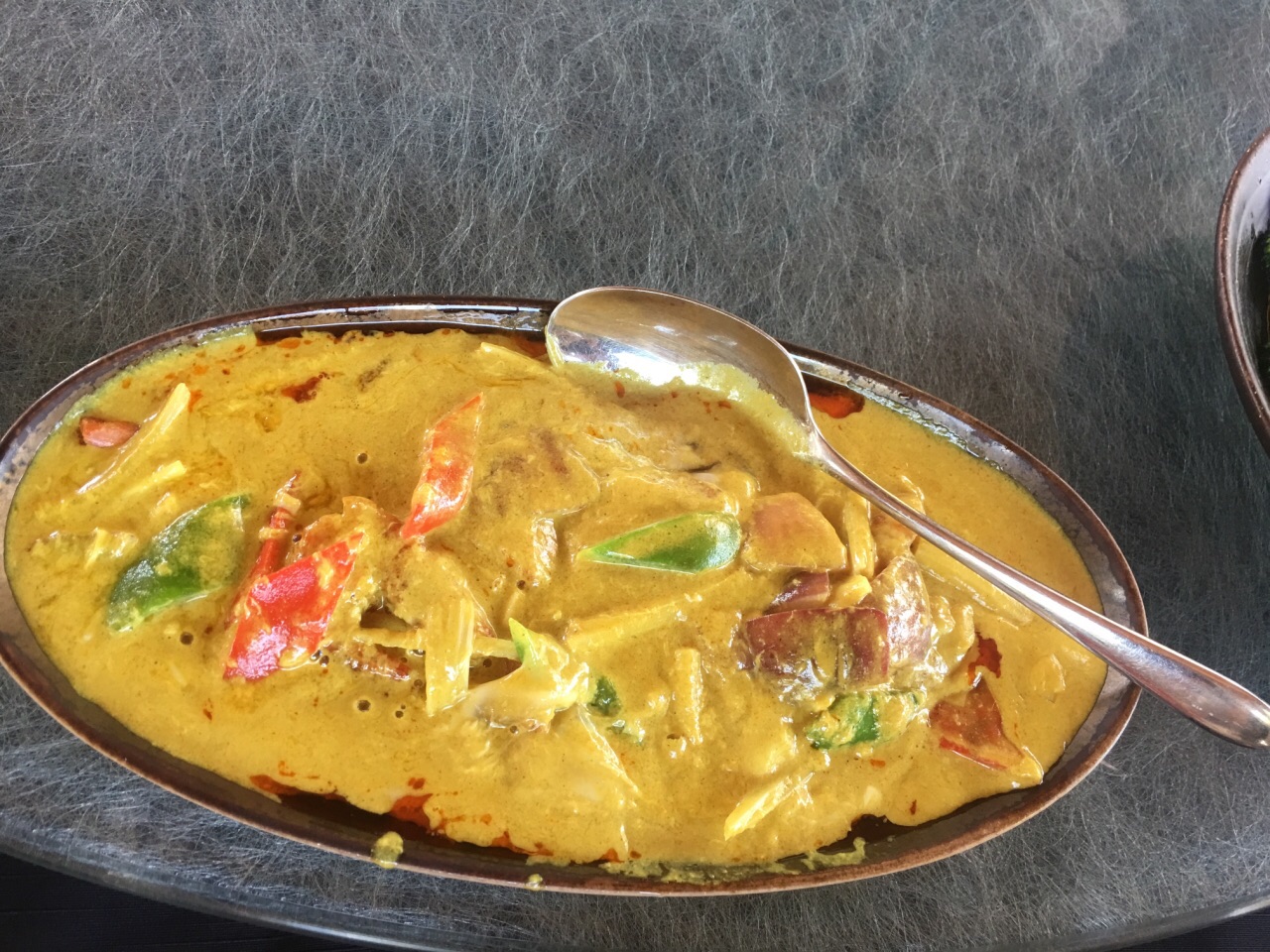 说到泰国菜,最出众的大概就是咖喱虾和菠萝海鲜饭了……今天我是在住的酒店餐厅点的!菠萝海鲜饭还好说到泰国菜,最出众的大概就是咖喱虾和菠萝海鲜饭了……今天我是在住的酒店餐厅点的!我觉得它们最好吃的就是烤类和咖喱吧。菠萝海鲜饭还好!