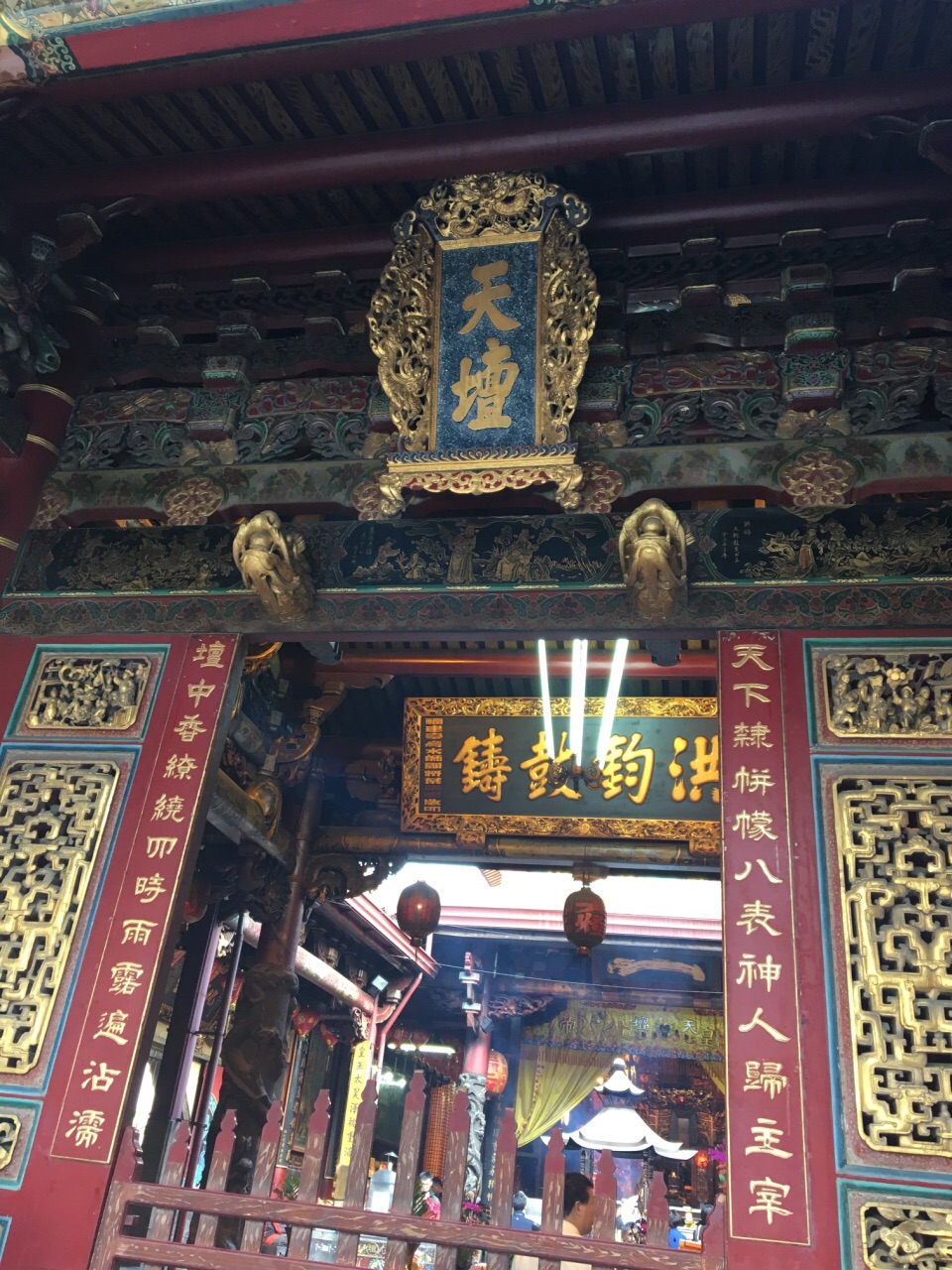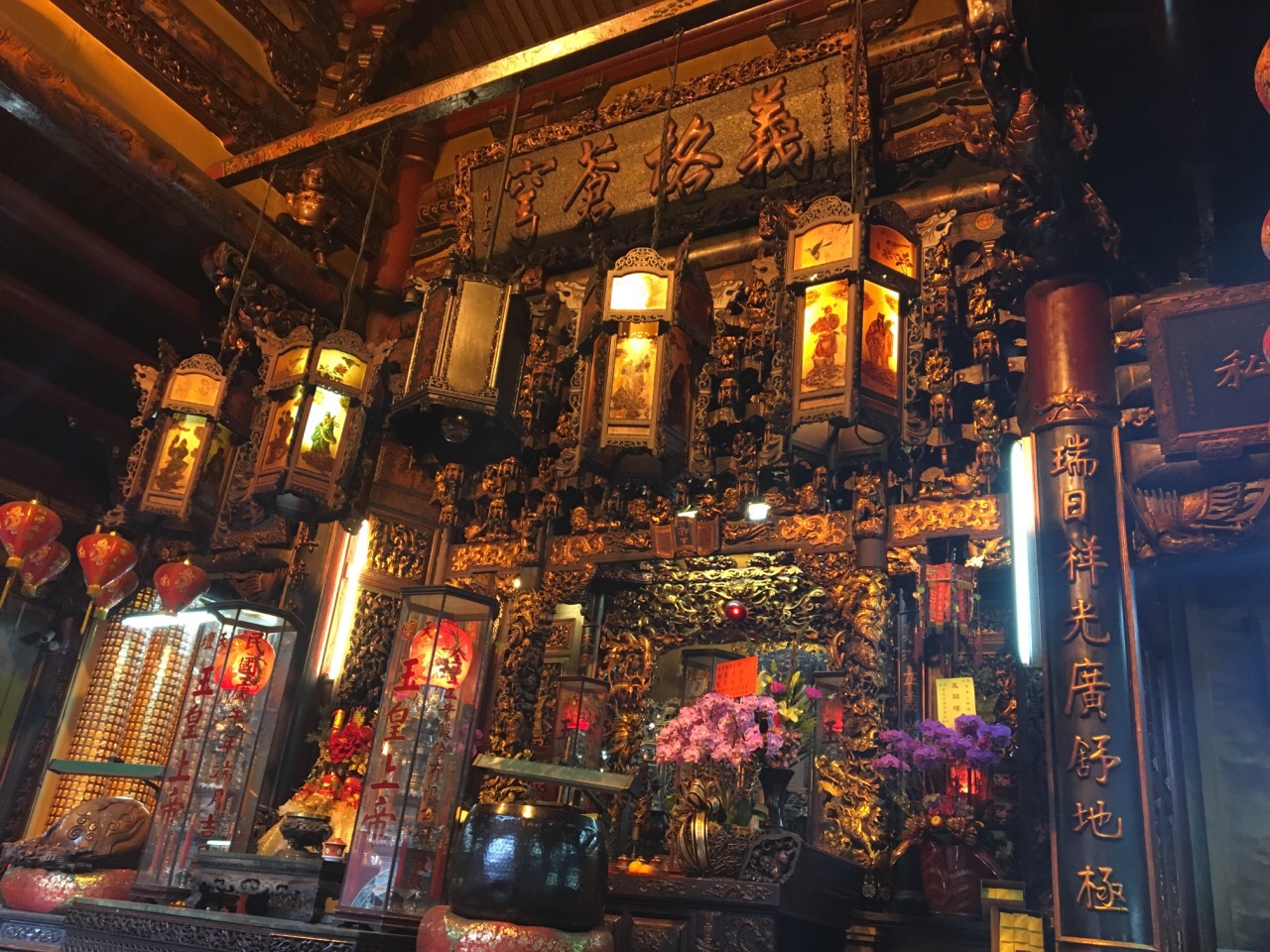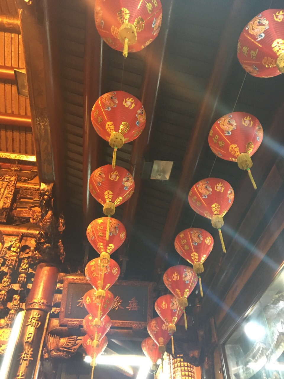 春节期间,首庙天坛也布置的华丽喜庆,节日的灯笼从巷口一直挂到了庙里。这一带是台南地势最高的地方,因而在这周边就有北极殿、气象测候所、天坛等重要建筑。天坛,故名思义,向上天祈福的地方,当然要建在最高处,是明郑时期官方祈福的地方,从功能上来说,与北京天坛相同。