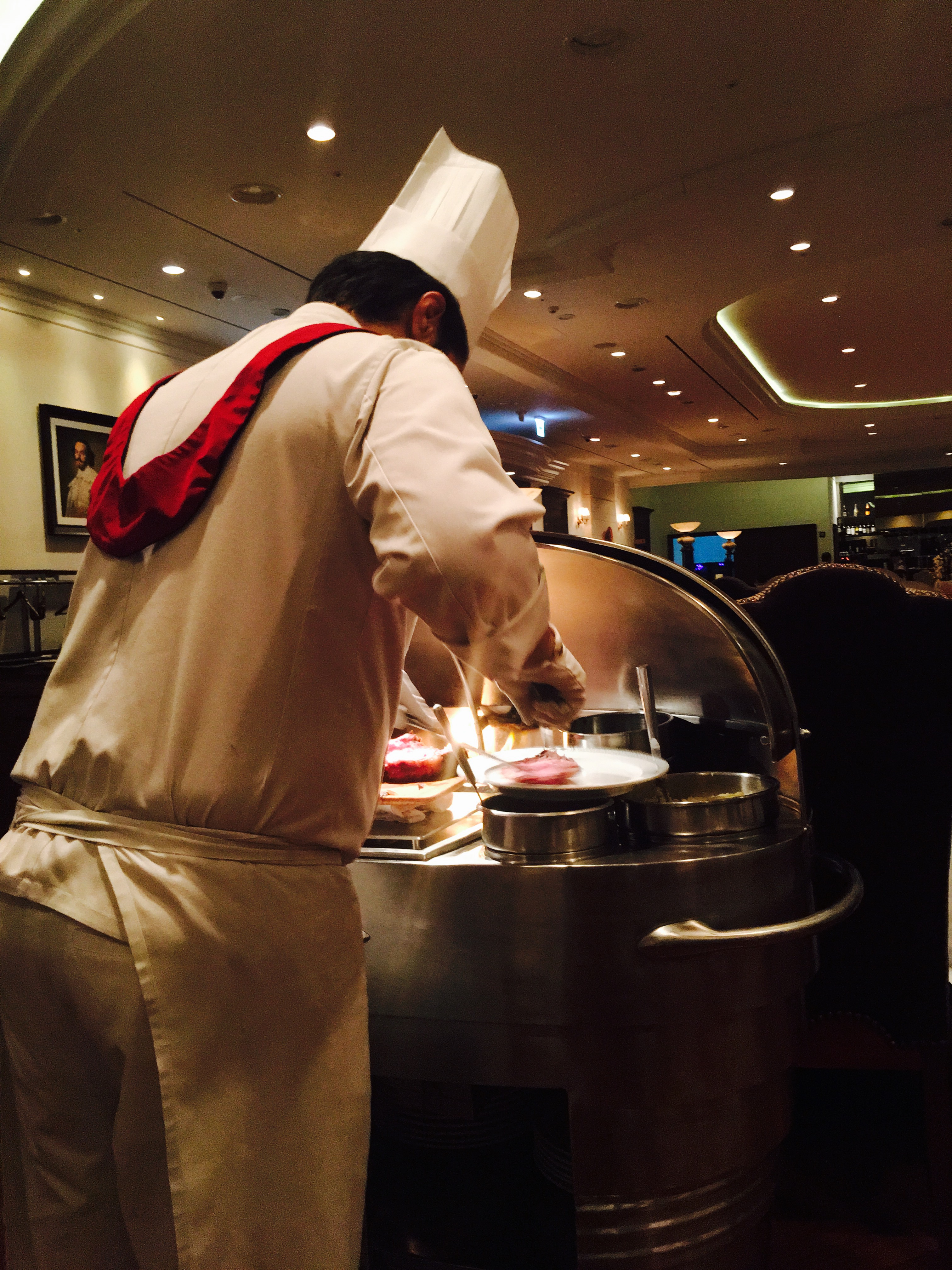 沙拉的制作过程看的人眼花缭乱,歪果仁厨师把厨台搬到你的眼前,根据你对牛肉的要求就按照你的要求...