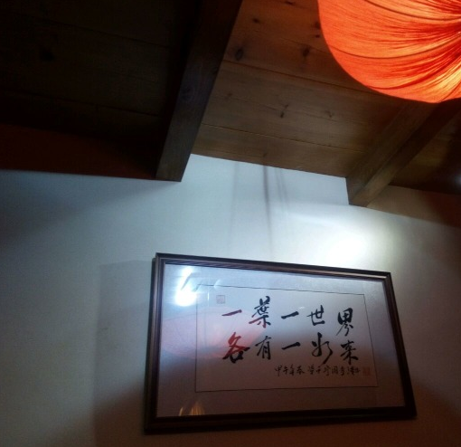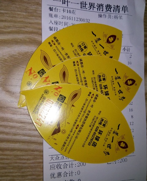 第一次吃一叶,之前就听说一叶好火哟,素食的领军人物呀,在成都东南西北开了好几家分店。真是百闻不如一见,今天上午给远在南边绕城那里(那么远,那么远……)的环球中心的一叶打电话预约,被告知只有拼桌的位置了,当时虽然心里有点点小不爽,但因为已经和家人约好了所以就还是答应了预约拼桌的位子。 一叶在大众点评的地图上写的超级清楚,所以直接按照大众点评地图的指示绝对能找到,环球中心——全球最大单体建筑,真的,你要走个对角线,能让你走上半个小时!在环球中心的北门的电梯上三楼,就能容易的到达一叶,我们提前一刻钟到店的,前台复核了我预约时候留下的手机号码和姓名,就带我们去到了拼桌。 拼桌的桌子是六人座的方桌,真的不算大,我也是第一次跟别人拼桌,还挺不习惯的。好在我们两个人去的早一点,迅速的点了菜,上菜吃菜都比较快,所以跟后面来的其他拼客们在桌面上不打挤。如果基本上是同时入座的话,桌面上会摆放不下菜的,而且说实话,容易拿错,那就很尴尬了…… 锅底我们选择了最便宜的8元一份的原味锅底,就是清水+茶包;味碟5元一人;筷子1元一人。味碟可以自主添加,店员会先弄成大众口味的给你端上来。原谅我不知道这情况,自己跑去打了蘸碟,然后店员给我弄的那份我就给拨弄到家人的蘸碟碗里了。其实建个议,可以给客人打蘸碟前问一句,一是万一客人像我一样想要自己弄呢,二是其实有些人是不吃某些佐料的。 菜品方面,我们点了好多的菌类和素菜,价格还算适中,我们两个人连吃带打包的用了。吃得肚子鼓鼓还满载而归!