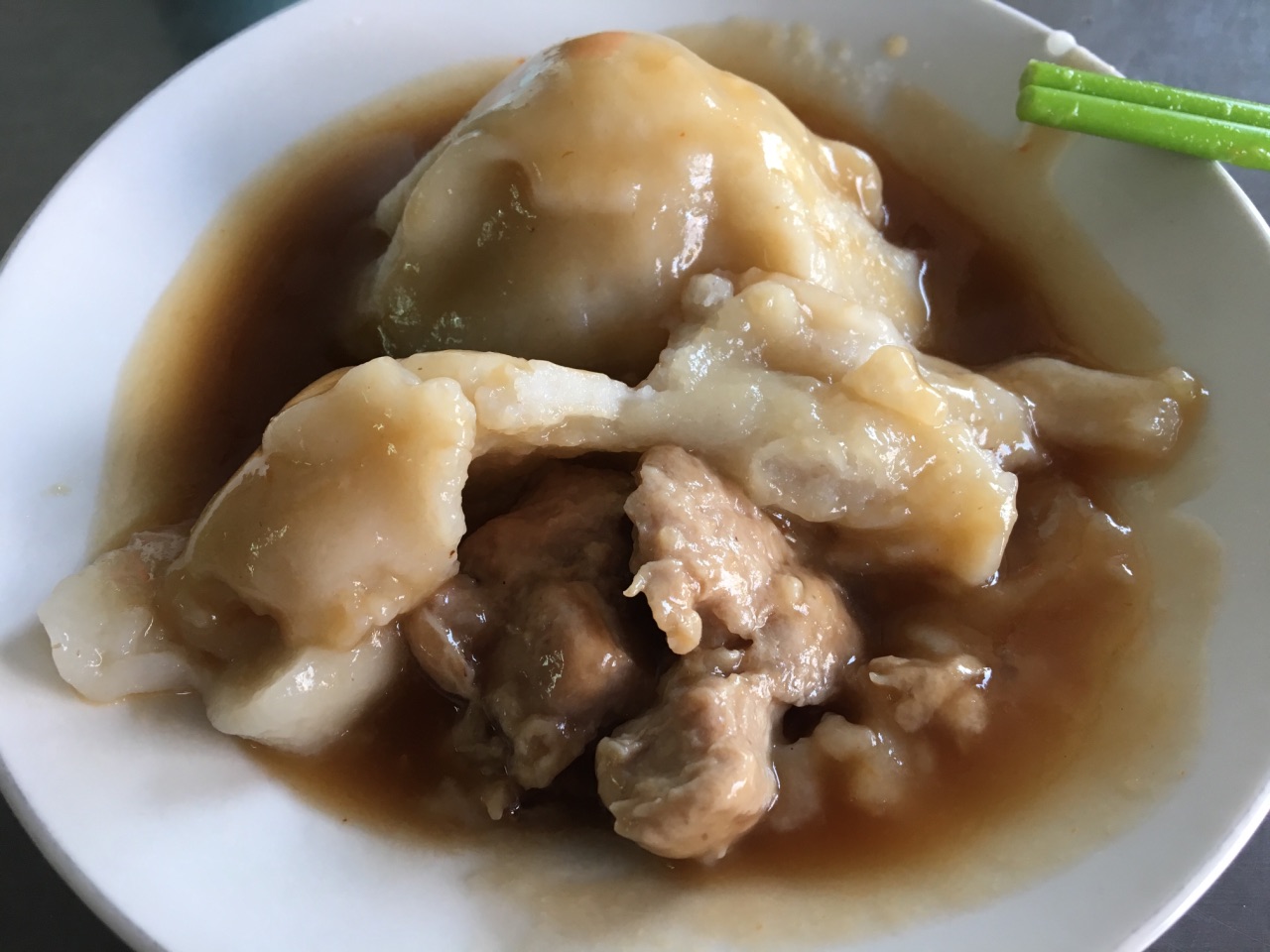 福记肉圆名气很大,因为就靠近孔庙,慕名而来的游客也是非常多。一份两粒,感觉是红薯粉与米浆的混合物蒸成的外皮,软塌塌的,不算很Q。里面的肉丸的确很大块,但感觉有点被压的死死的,并没有多鲜嫩多汁。主要是靠淋上去的那一勺酱汁在调味,总的来说没有什么惊喜
