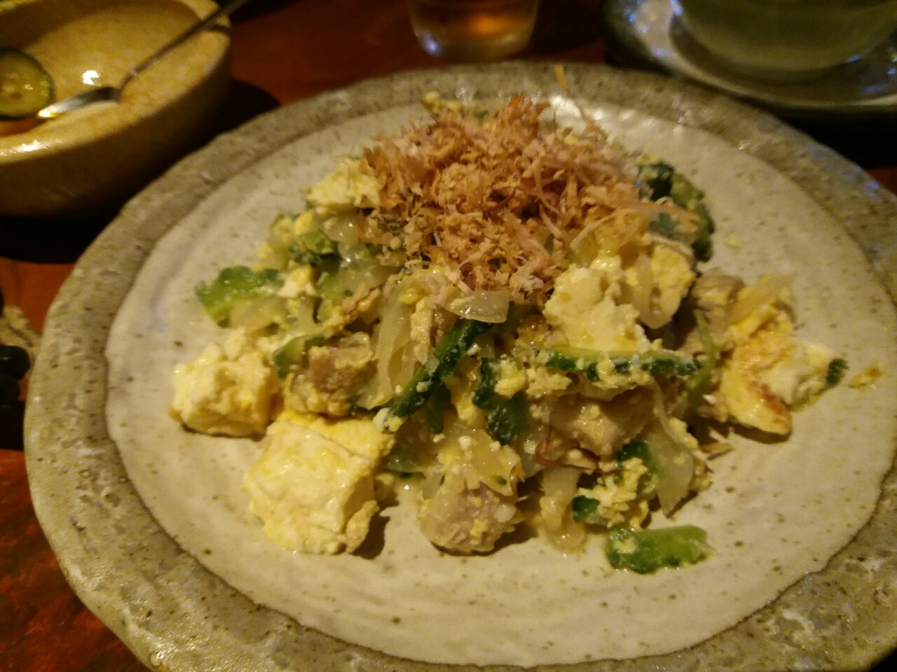 一日游结束大巴停在县厅站附近 下车就想找一个本地料理吃一下 路过波照间被一个可爱的老头忽悠进去了 说是饮品免费一杯橙子酒 想着里面还有表演也有中文菜单就进去了 据说二楼有琉球表演但是没上去 吃到一半开始欢快的载歌载舞三味弦超级好听啊 虽然菜有点贵那个猪肉涮涮锅要2800日币 最爱花生豆腐好吃到爆啊 苦瓜炒蛋里面还有豆腐味道不错 煎饺和炒面都一般般吧