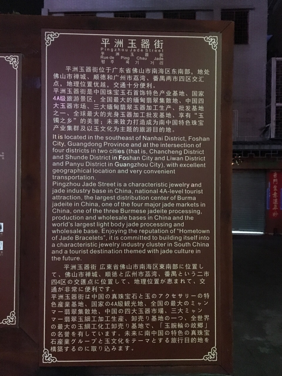 平洲玉器街是广佛地区很有特色的玉器珠宝行业专卖集中区域,交通便利,商户集中,品种齐全,在建的南...平洲玉器街是广佛地区很有特色的玉器珠宝行业专卖集中区域,交通便利,商户集中,品种齐全,在建的南海新交通轨道直通广州南站,喜欢玉器的朋友值得来玩一玩,挑选自己心水的宝贝。