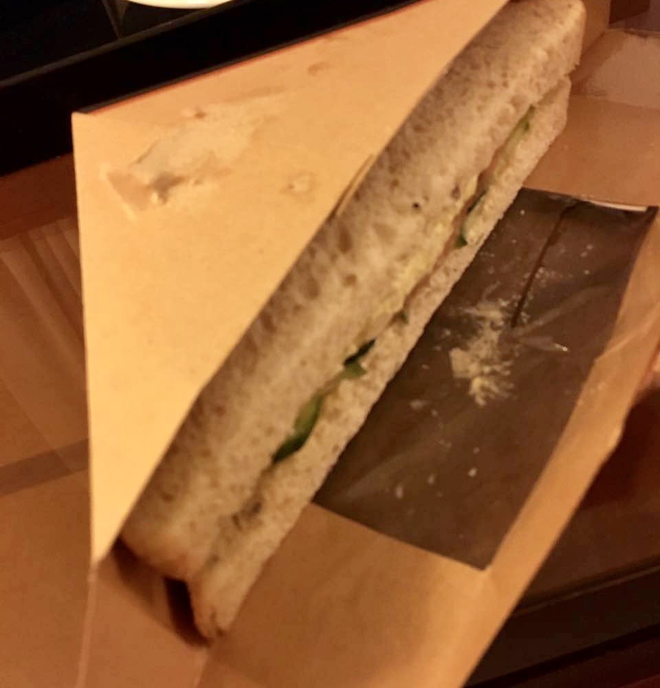 这里不仅有咖啡,还有不少小食。拿到收据才发现,这里提供WI-FI,密码可向店员索取这里不仅有咖啡,还有不少小食。买了一个烟熏三文鱼三明治,23元,凉凉的,内有鸡蛋白和蔬菜。拿到收据才发现,这里提供WI-FI,密码可向店员索取。