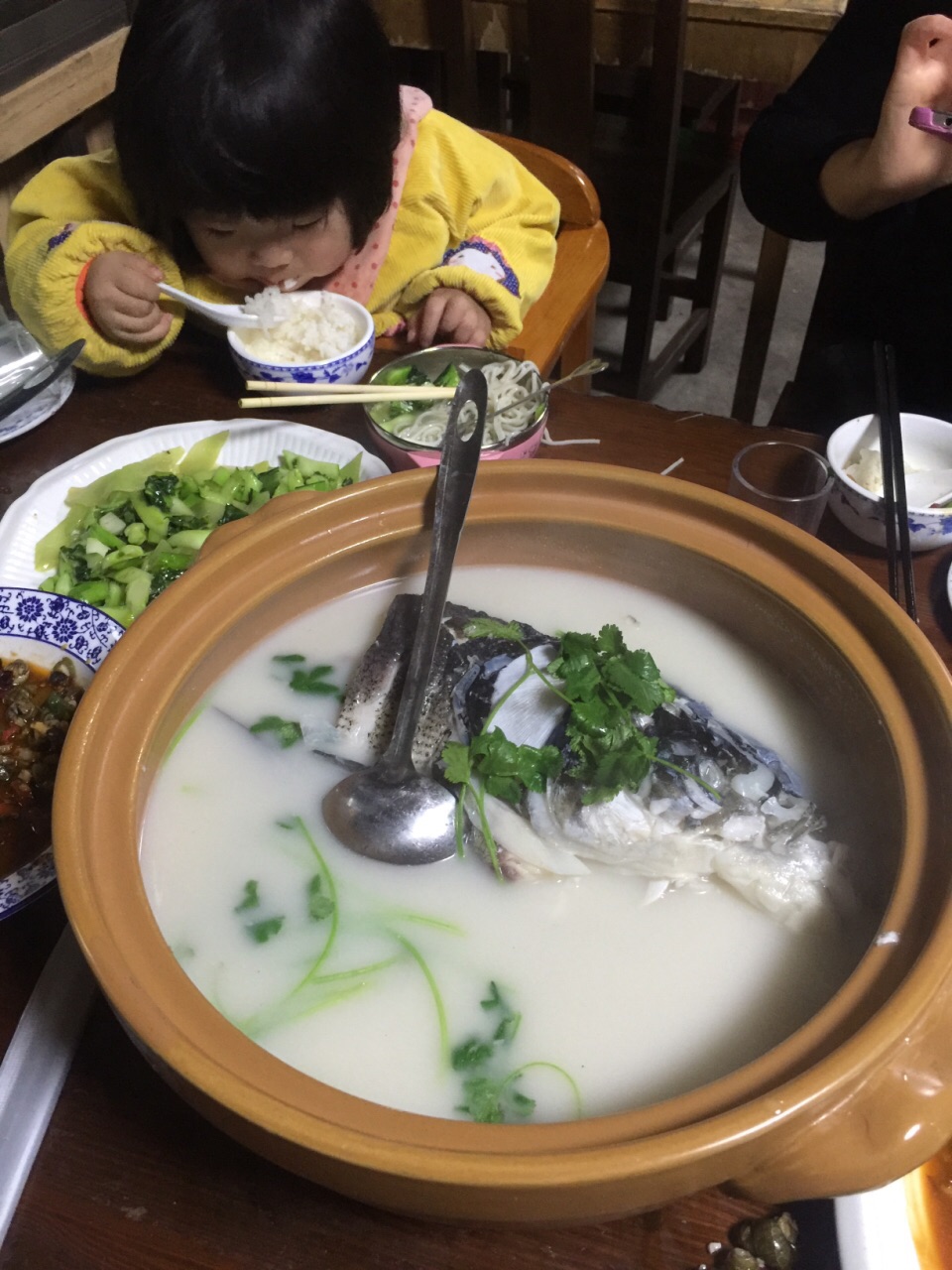 因为是元宵去的 很多饭店还没开门 去千岛湖当然是要吃鱼啦 后来去的这家 团购198 一鱼两吃 4斤多的鱼 还送两个蔬菜 鱼非常赞 价格也很实惠 老板娘态度也很好 我们点了一个豆腐干 上来后发现是辣的宝宝吃不了 老板娘二话不说就帮我们退了 强力推荐!