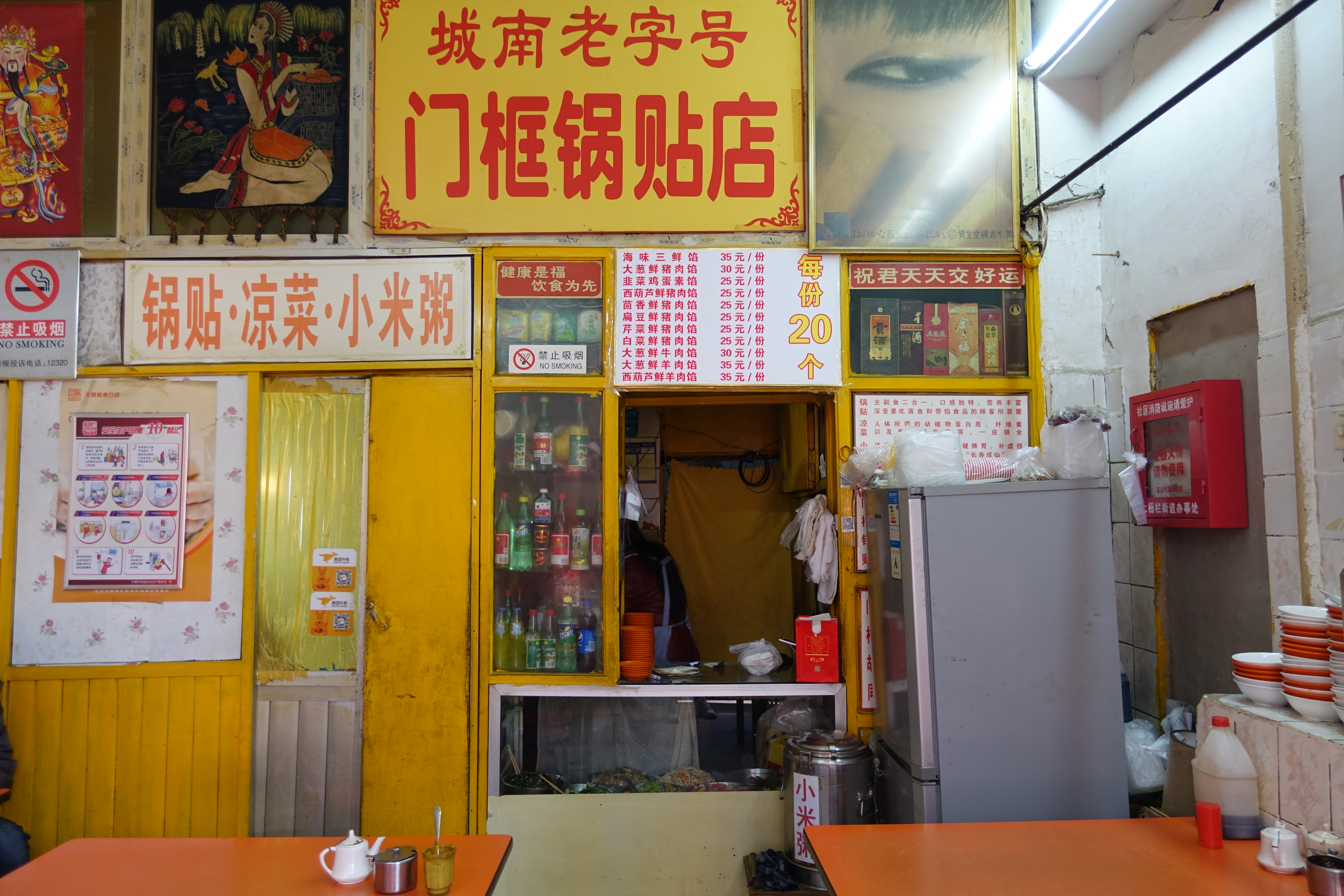 ...同深处的锅贴店,店内的食客主要来自周围的邻里街坊,店面很小,环境很破旧,店内也没有什么人手帮忙