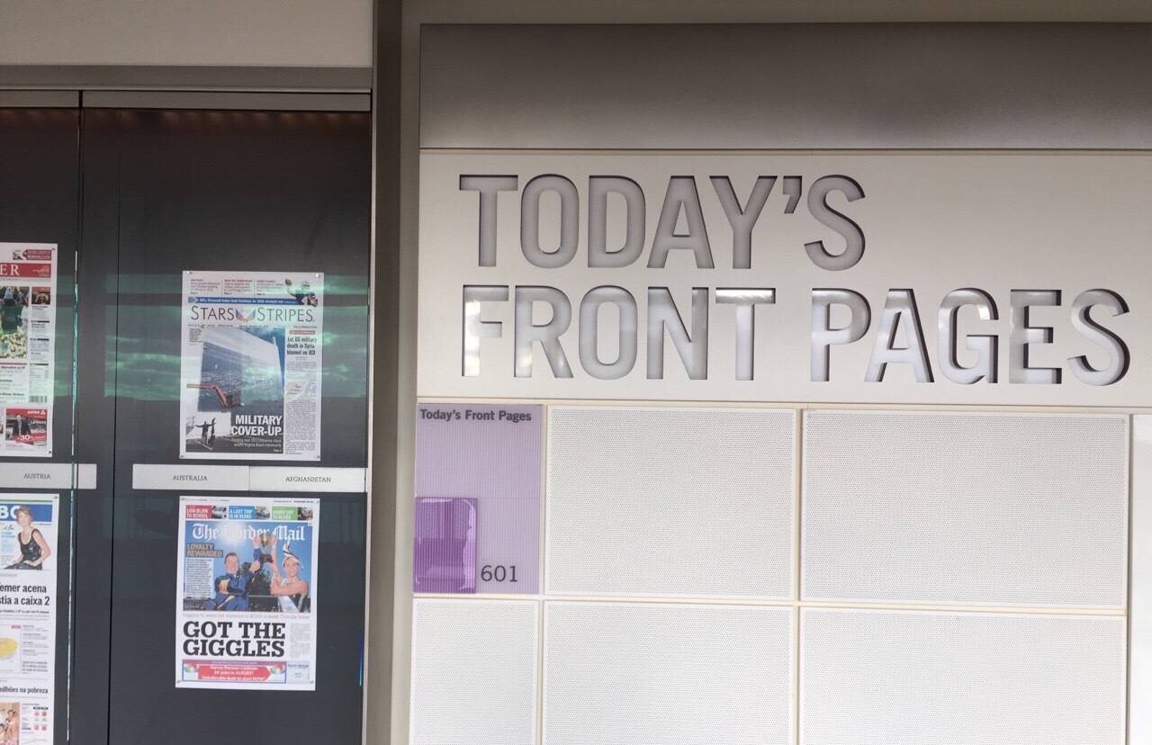 网友2017-02-14华盛顿新闻博物馆,一个以传媒新闻为主要内容的博物馆,他的著名的《今日头版》橱窗展示,有Chin...华盛顿新闻博物馆,一个以传媒新闻为主要内容的博物馆,他的著名的《今日头版》橱窗展示,有China Daily等世界主要报纸的头版版面。 也是自豪