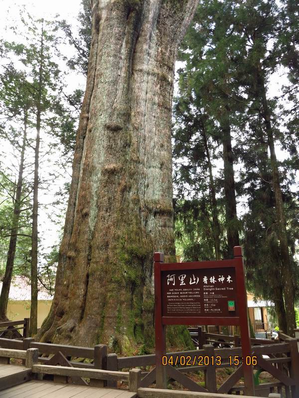 巨木栈道到了,这里那些800年以上的红桧木都是有编号和介绍的,剩下的也不多了,这片游览区也就那么几十棵,一路走一路看,扭曲的树根,褶皱的树皮,高入云间的树冠,那种神韵确实不是那些再生林可以比拟的。三代神木的互相缠绕,2700年高龄的香林神木的巨大,日本人忏悔的树灵塔的凝重,游览一圈正好绕回到神木火车站,站台上横七竖八的几根巨木倒在那里,那个也是被雷击的神木遗址。