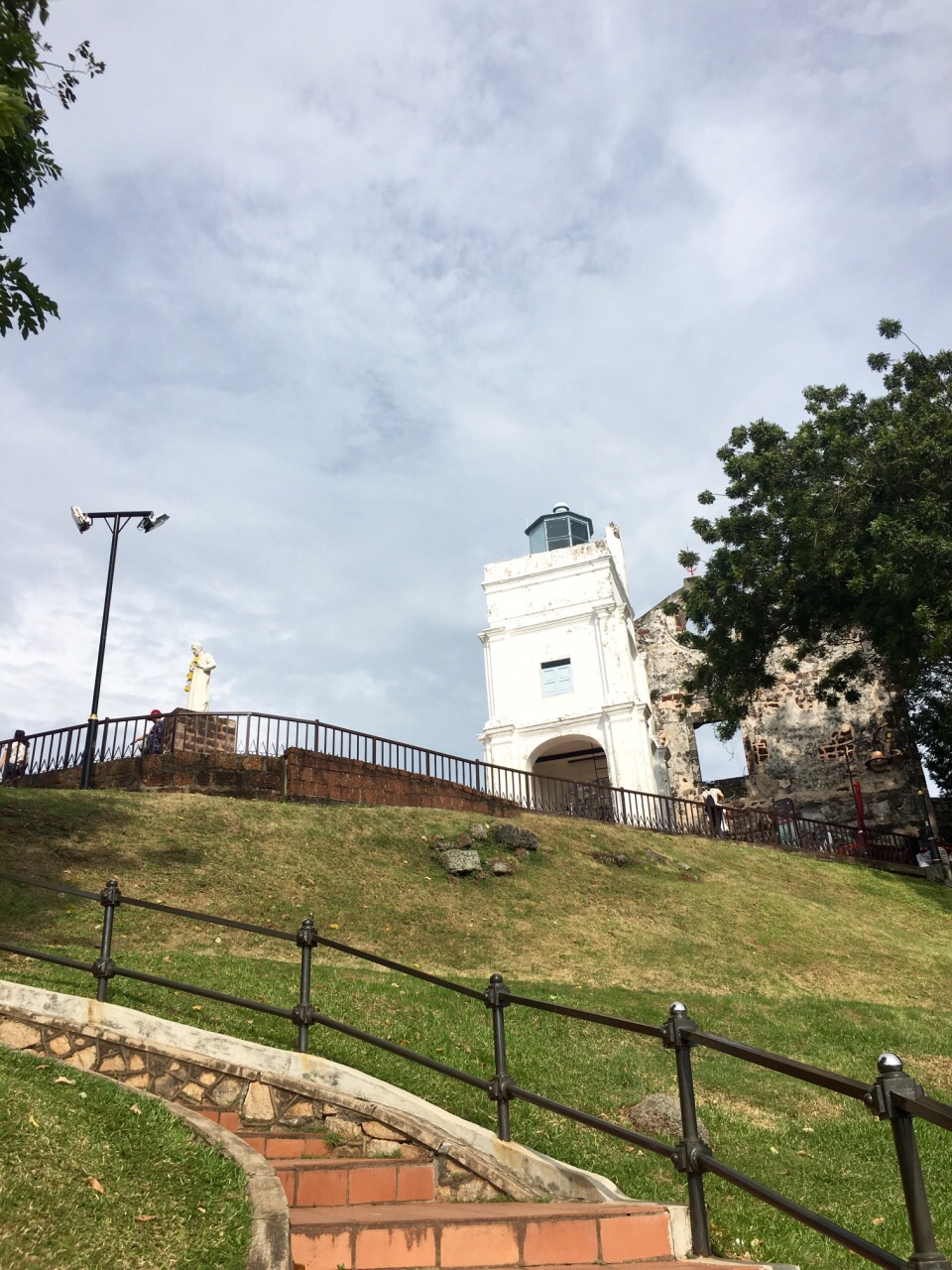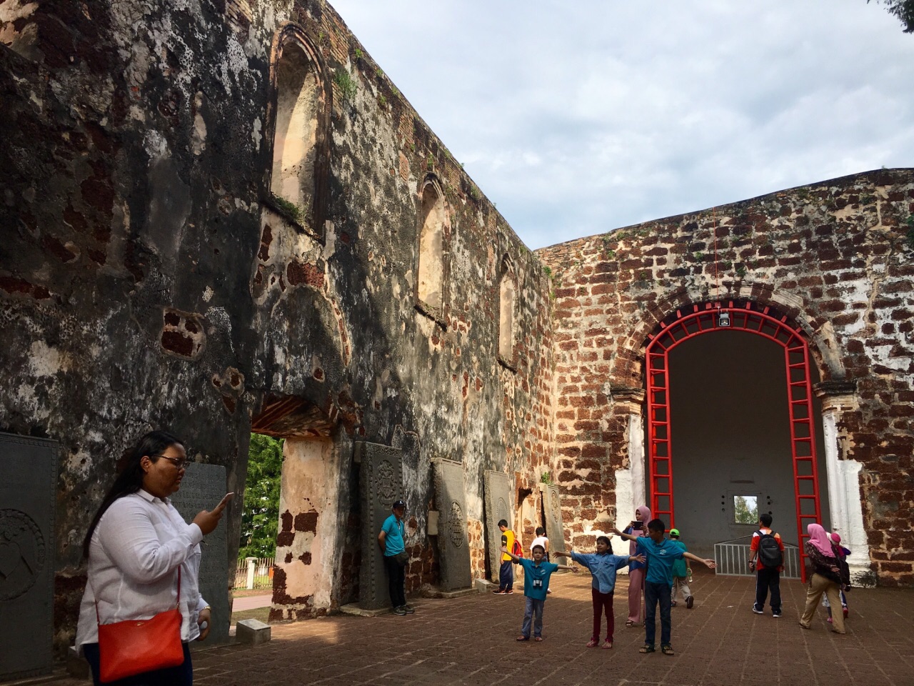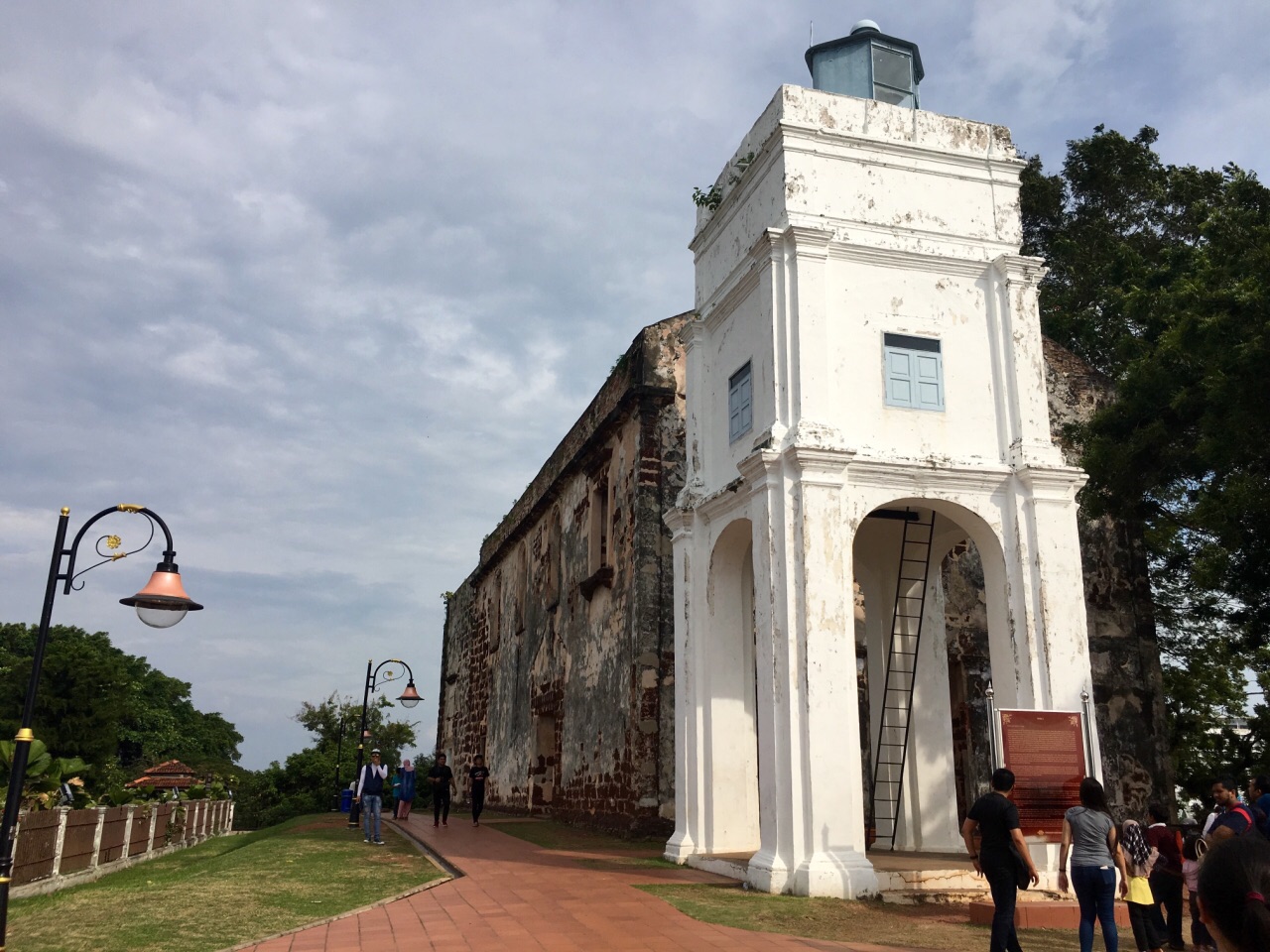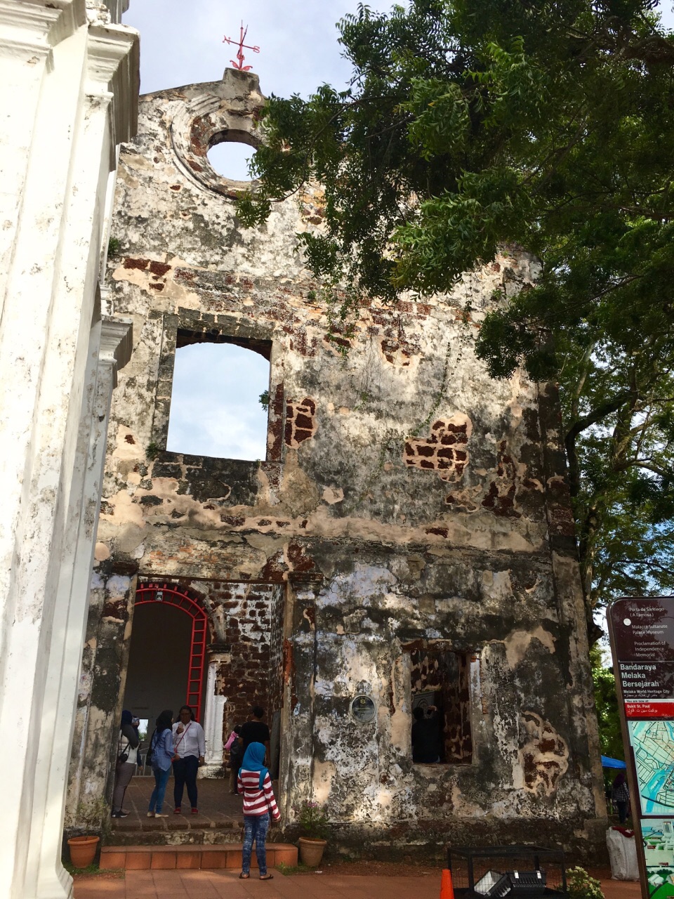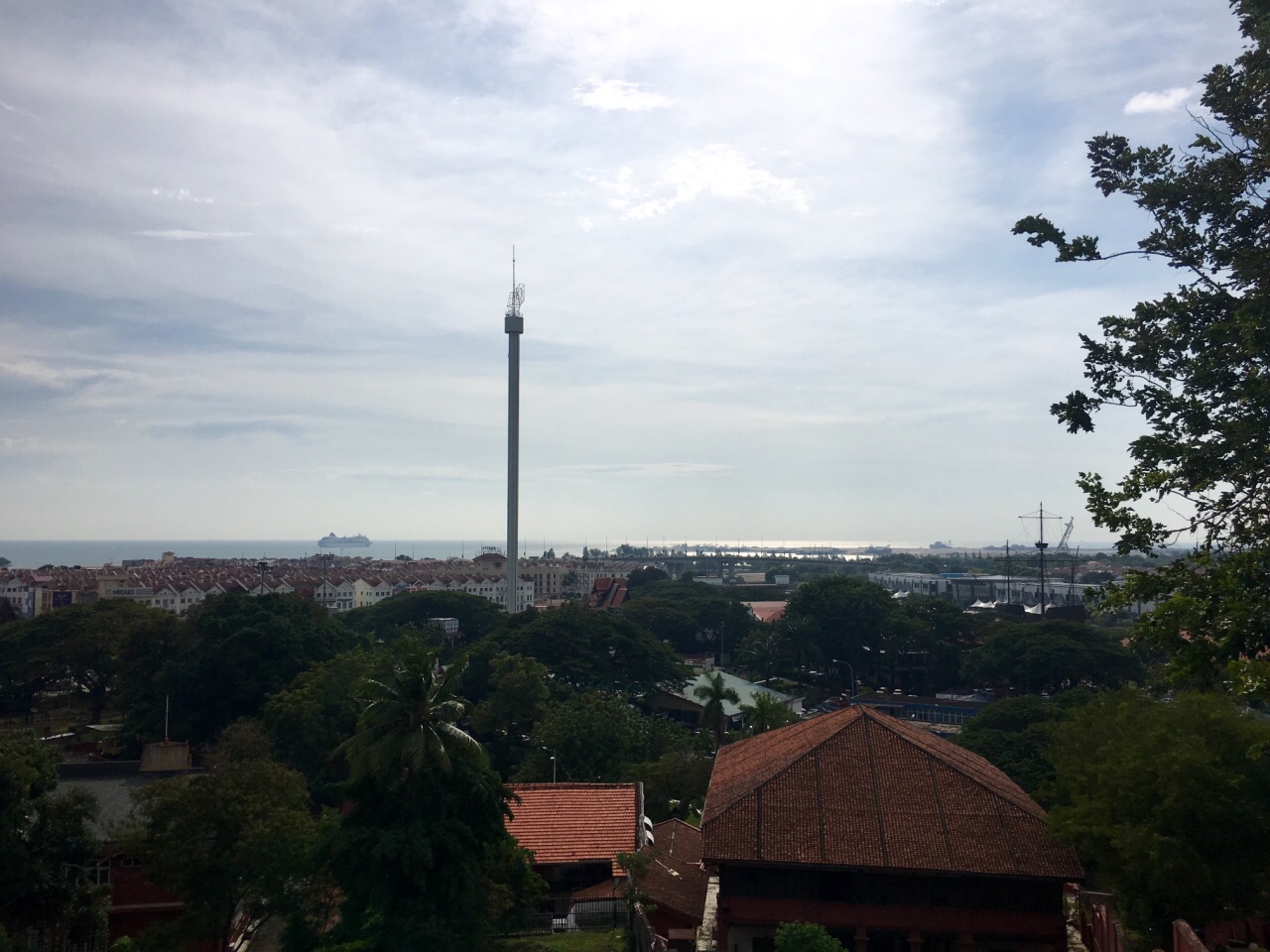 从圣保罗山远眺马六甲海峡也有无限风景。爬上这个小山头,就是和大三巴一样命运的教堂,只剩四面墙