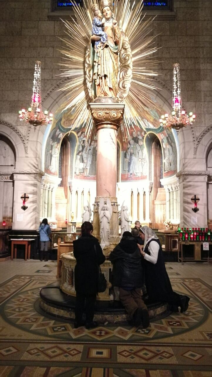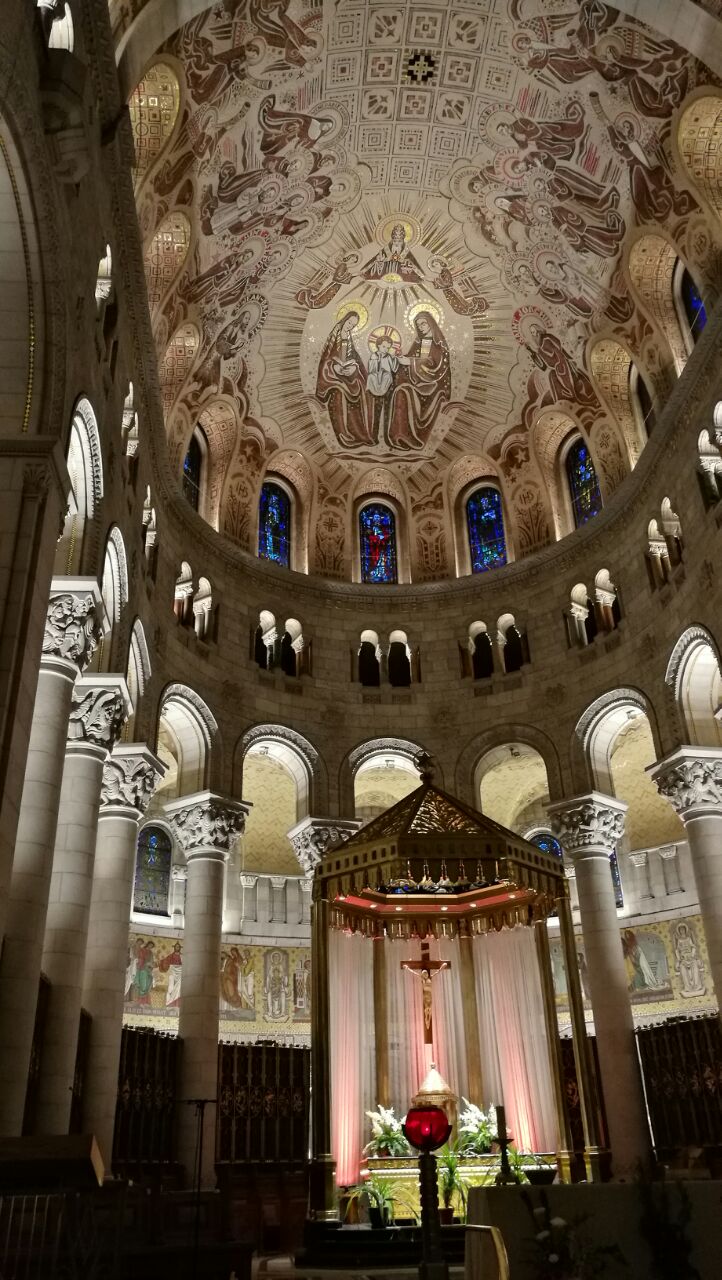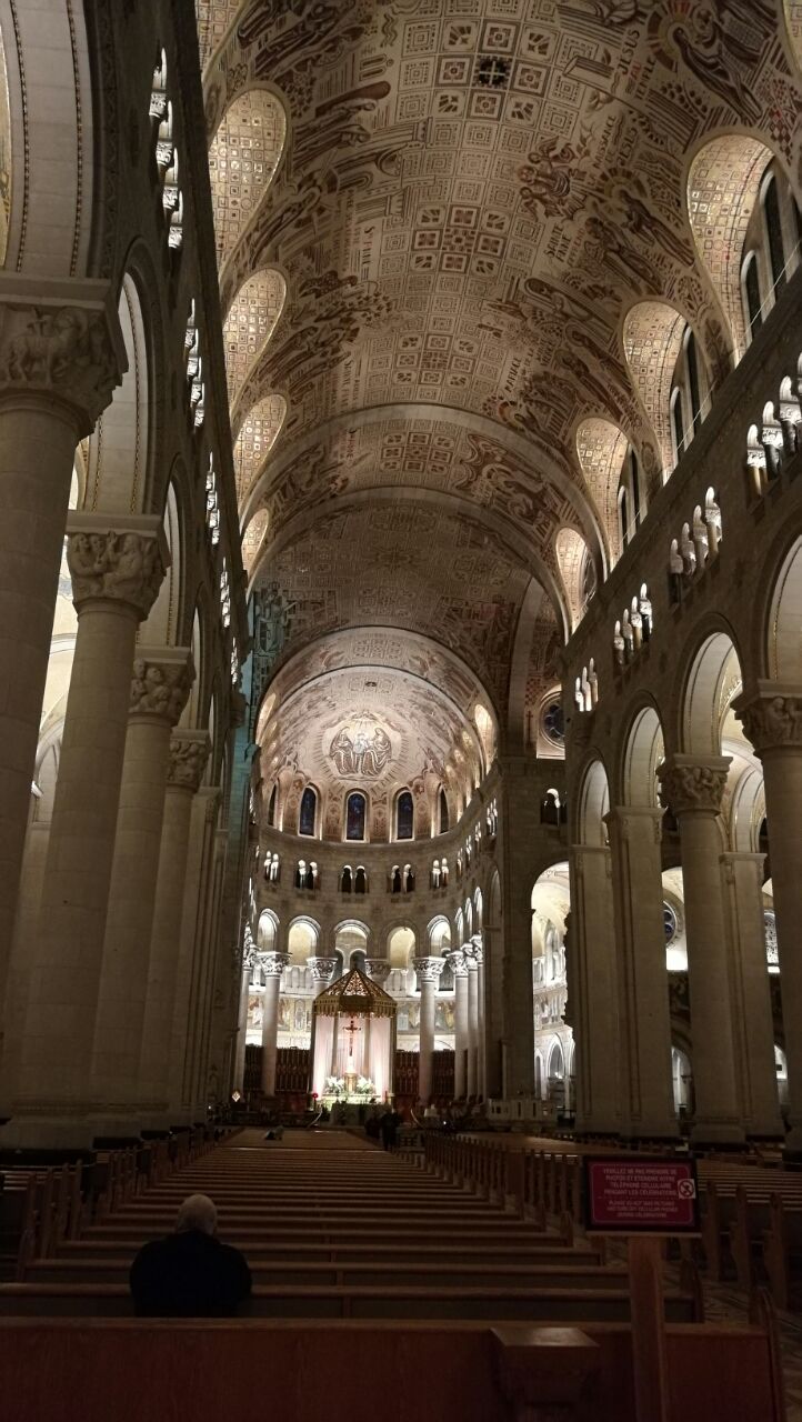 大教堂值得一看的,因为好高好大,在我看的教堂里真的算大的,只不过年头没有那么久,看着不那么沧桑。但超大的空间令人震撼,也有精致的雕像绘画,有教皇送的金像,奇怪的是,教堂并不在繁华地段,距离魁北克城大约30公里,问了游客中心,没有公交,要跟团才能去,不知为啥教堂修在了那个地方。报了个团56加元(大约,票被收走了),只有12:30出发这一班,于是跟来,旅游团停了6次,除了教堂还有一个瀑布也不错,其他没有什么意思,但很拖时间,司机兼导游念叨了一路,是热情介绍,但我竟觉得有些烦躁,因为这边天黑早,我希望到教堂的时候天越亮越好,最后大概3点20到的,加上阴雨天,天色已经暗了,错过了好的光线拍照,也是有几分扫兴。
