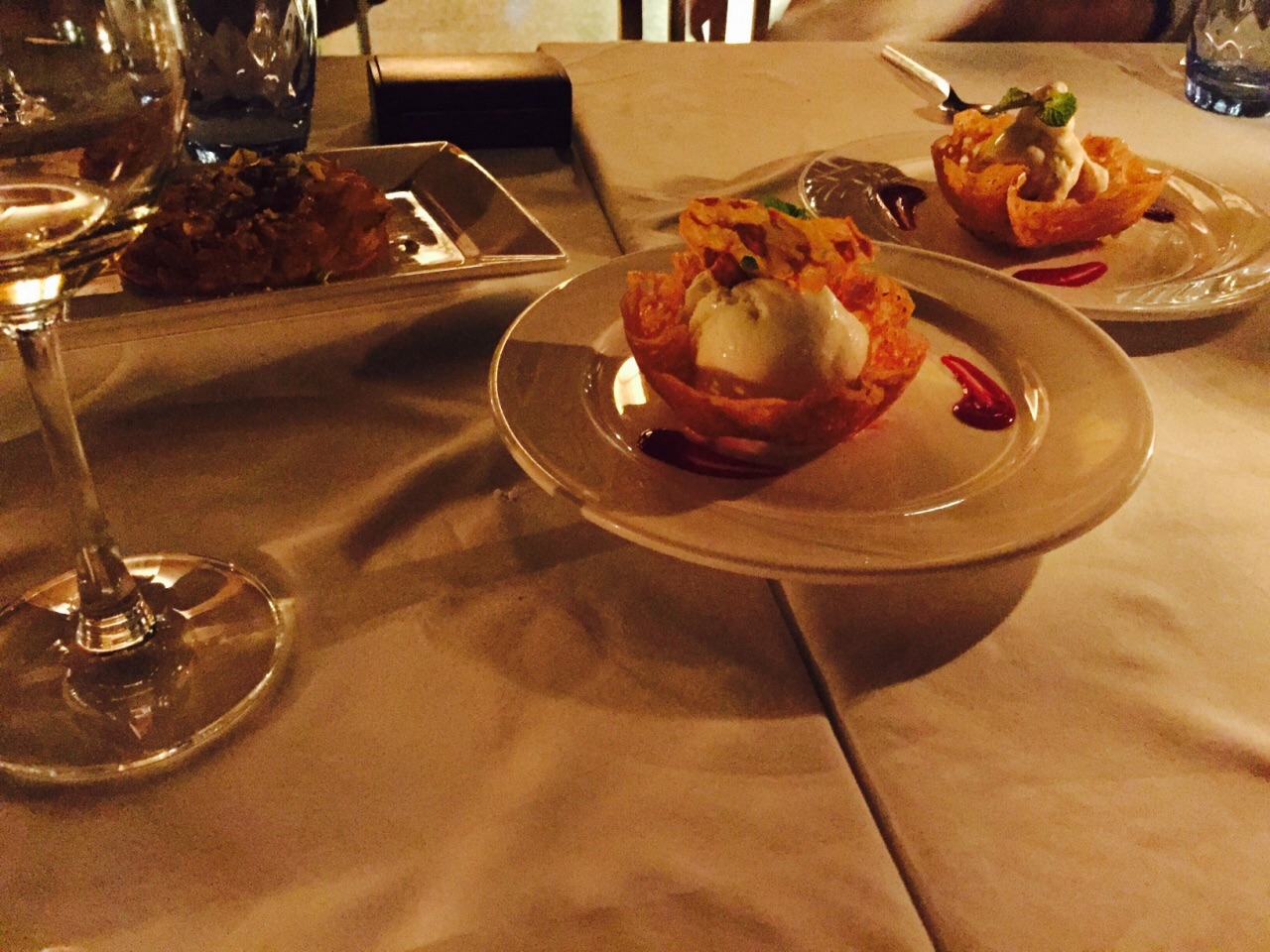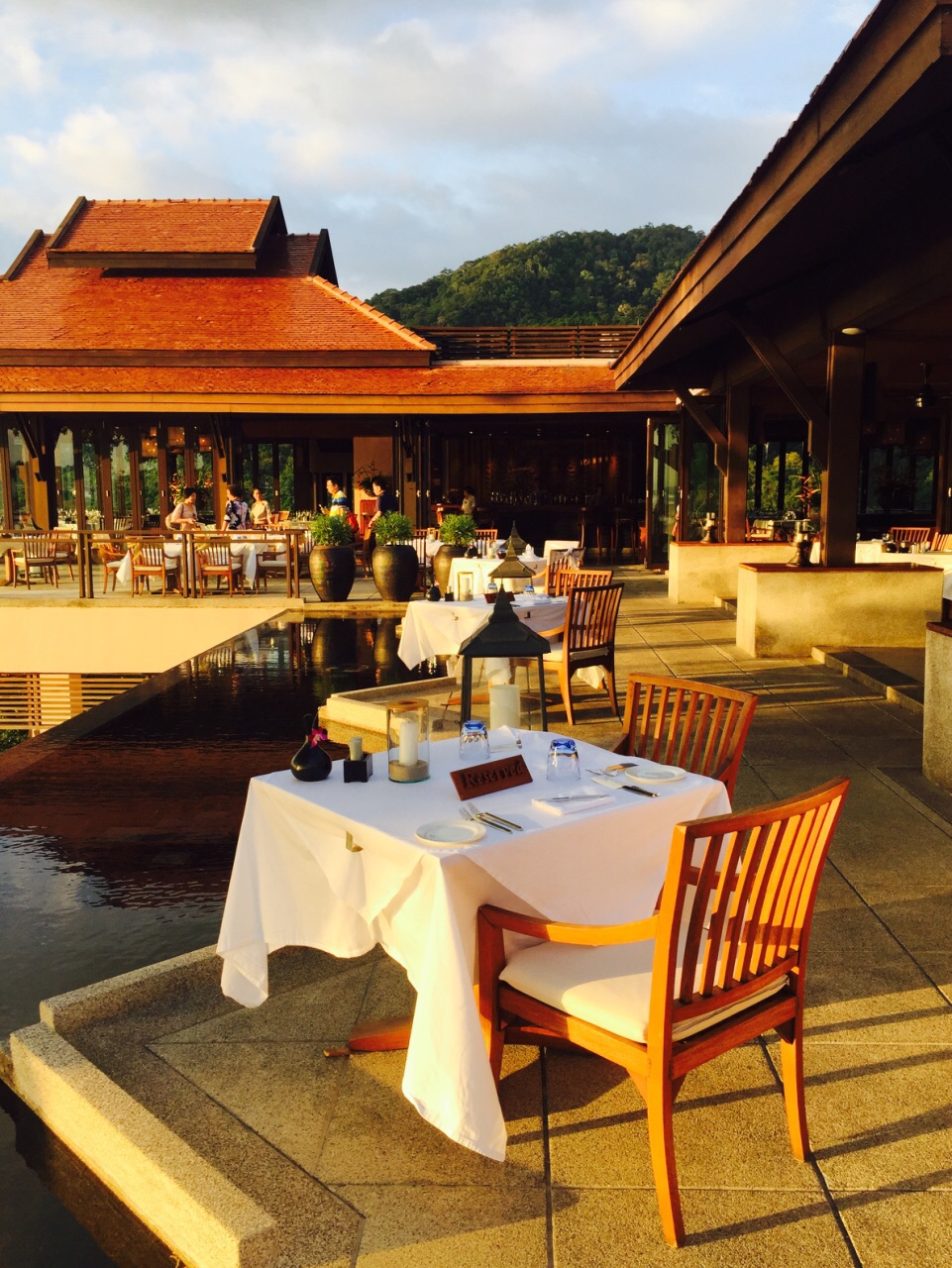 地理位置应该算是半山腰偏上,爬坡而上,一路途经的都是度假酒店,鳞次栉比,大小不一。一个拐弯到了这里,道路两旁繁杂的各种商铺小店消失踪影,周围突然安静了下来,郁郁葱葱茂密树丛中,看到了Pimalai的标志。 我是农历三十,也就是中国传统的大年夜来到这里的,7000一晚的住宿费,在进入resort看到绝佳的风景如画之后,欣然理解了高价的价值所在。无与伦比的地理取景,优质上乘的服务水平,闹中取静的幽雅氛围,还是很值的~ 在这里享用了“年夜饭”,要了甜酒,鸡尾酒,口感香醇。甜品要了冰淇淋,各种口味,一盆盆搭配精致。不过,同行的其他人都认为,牛排火候过了,是一大缺憾~总体感觉还是相当赞的~