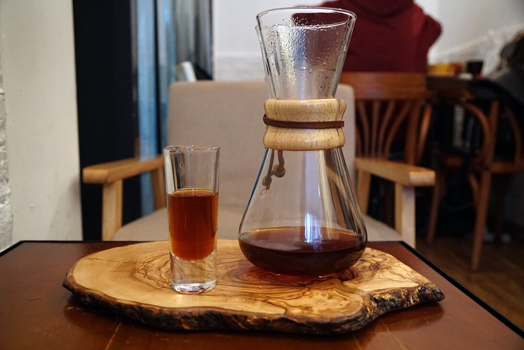 能够体现咖啡本身风味的手冲咖啡馆,20多平米加上吧台不过10个座位,却很受周边尤其是外国人喜爱。咖啡师手法利落,步骤到位。水洗耶加雪啡出入口有清新的柠檬酸,稍凉后酸度升高,清香溢出,让人想起茉莉花茶。虹吸壶保留咖啡分为层次感,法兰绒咖啡因使用法兰绒滤保留咖啡油脂,做出的咖啡更加醇厚。店里咖啡没有固定的拉花图案,咖啡师随心做给人惊喜。店里的各式咖啡用具讲究。