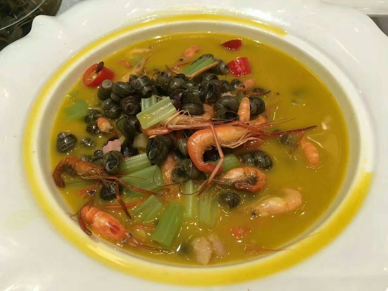 这家餐厅的环境非常的好,好像置身在花园用餐哦,绝对五星级的用餐环境。这里周末客人很多,需要提前预订座位。 这里的食材也是非常的新鲜,好多食材都是直接从湖里打捞起来的,很有东钱湖的特色,典型的宁波菜做法。这里的中餐厅每一道的菜的味道都是好极了。特别喜欢这里的河虾螺丝,金汤盆鱼等等…鱼一点腥味也没有,处理得很好。 这里菜的量也是很大,上菜的速度也是超级快的。服务员都很热情,很亲切,有一种回家的感觉。