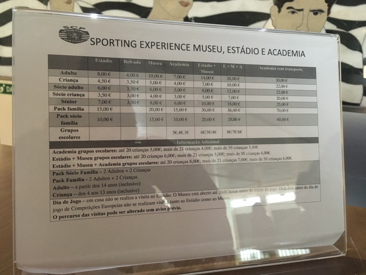 葡萄牙里斯本竞技队的足球队主场,就在市中心开车15分钟左右的路程,有附设地下收费停车场,参观博物馆10欧,足球场7欧,如果两个一起套票14欧,参观球场有小哥一小时的解说,但是只有葡萄牙语和英语,反正中文肯定没有。先参观了博物馆,里面简直是一个奖杯工厂一样,里里外外几层玻璃柜里面放满足球,田径,还有其他各项赛事近100年来的奖杯。里斯本竞技俱乐部真不止足球,其他各项运动均有参与。我们一致目标当然找今年最出名的c罗,还有他小朋友时候的学生球员正很可爱,但是整个博物馆不能拍照,还有工作人员紧跟左右,最后还有10分钟历史短片。 之后跟工作人员小哥介绍整个场地,历史,新闻发布会现场,球员更衣室,和球场,球场的座位颜色好活泼,而且专业球场没有跑道,就算坐山顶位置都能很清晰看球场,好希望能在这里看场球。