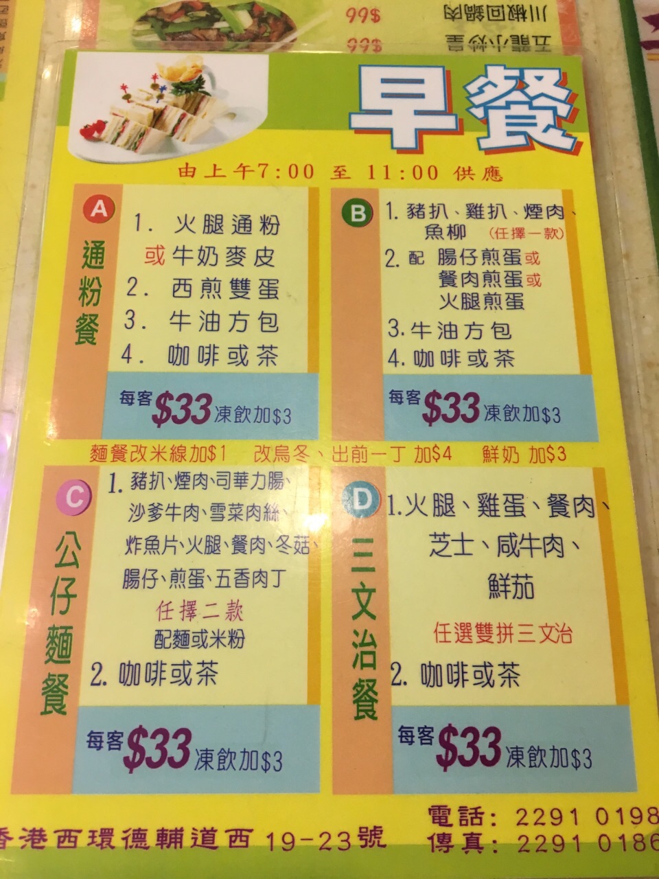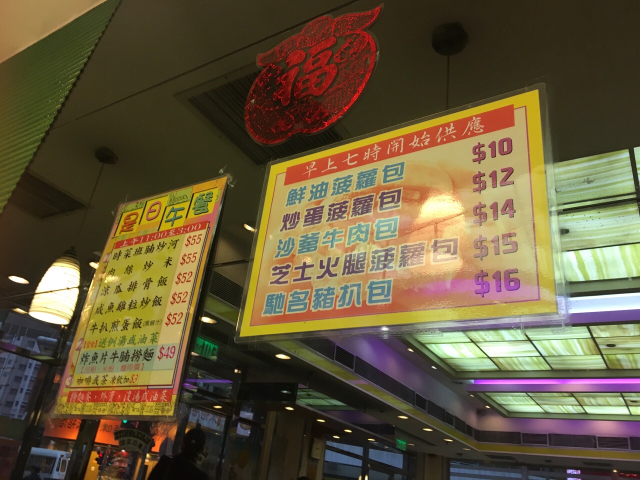 宜必思街对面就是新五龙,典型的香港茶餐厅,吃的种类很多,分时段供应,早午晚三餐都可以在这里解决。第一次去点了炒蛋菠萝油包,才12蚊,对女孩子来讲够了,味道不错。男同胞估计都得点33蚊的才会吃的饱。下次打算尝尝它家的粥