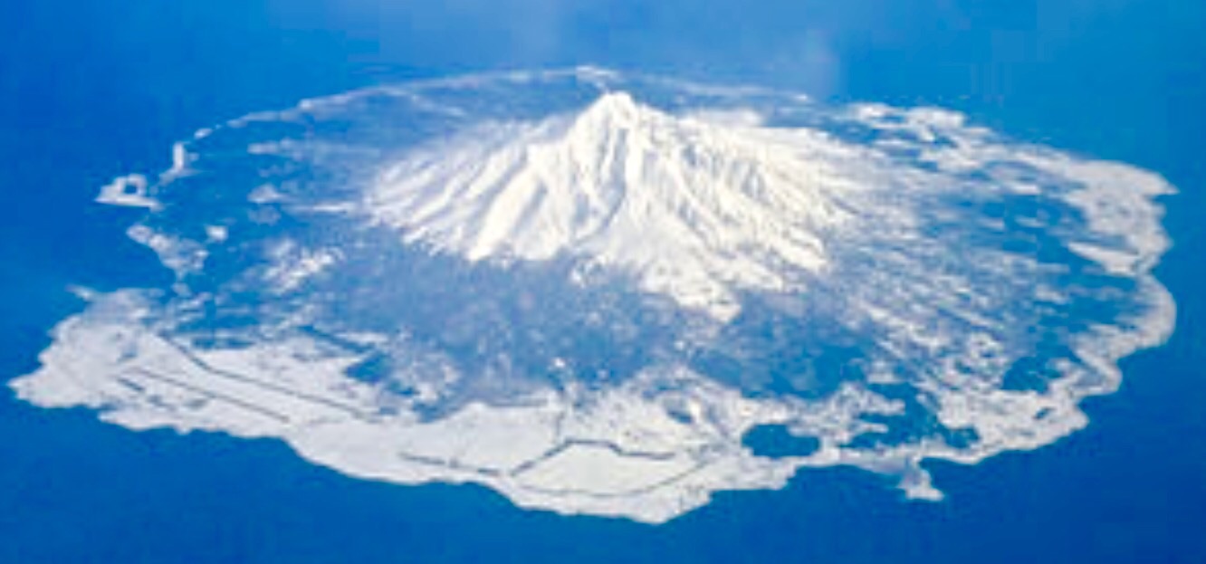 日本最北端的北海道利尻岛有一座海拔1700多米的圆锥体式火山:利尻山;因其形状酷似著名的富士山,又被称为“利尻富士”,其山麓的主要村镇被命名为:利尻富士町。利尻山从飞机上俯瞰,宛如碧海中浮游的巨型海母; 茂盛的植被衬托出其妩媚英姿.....