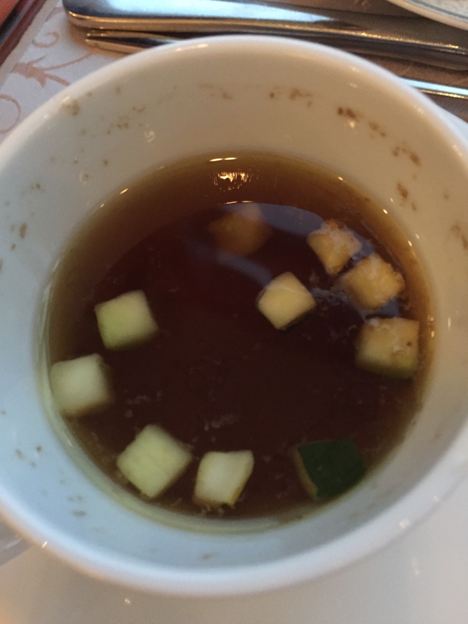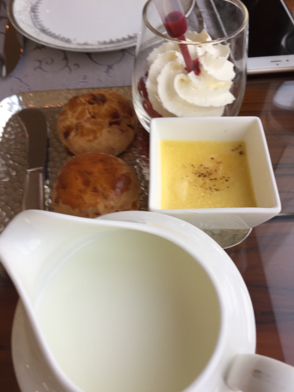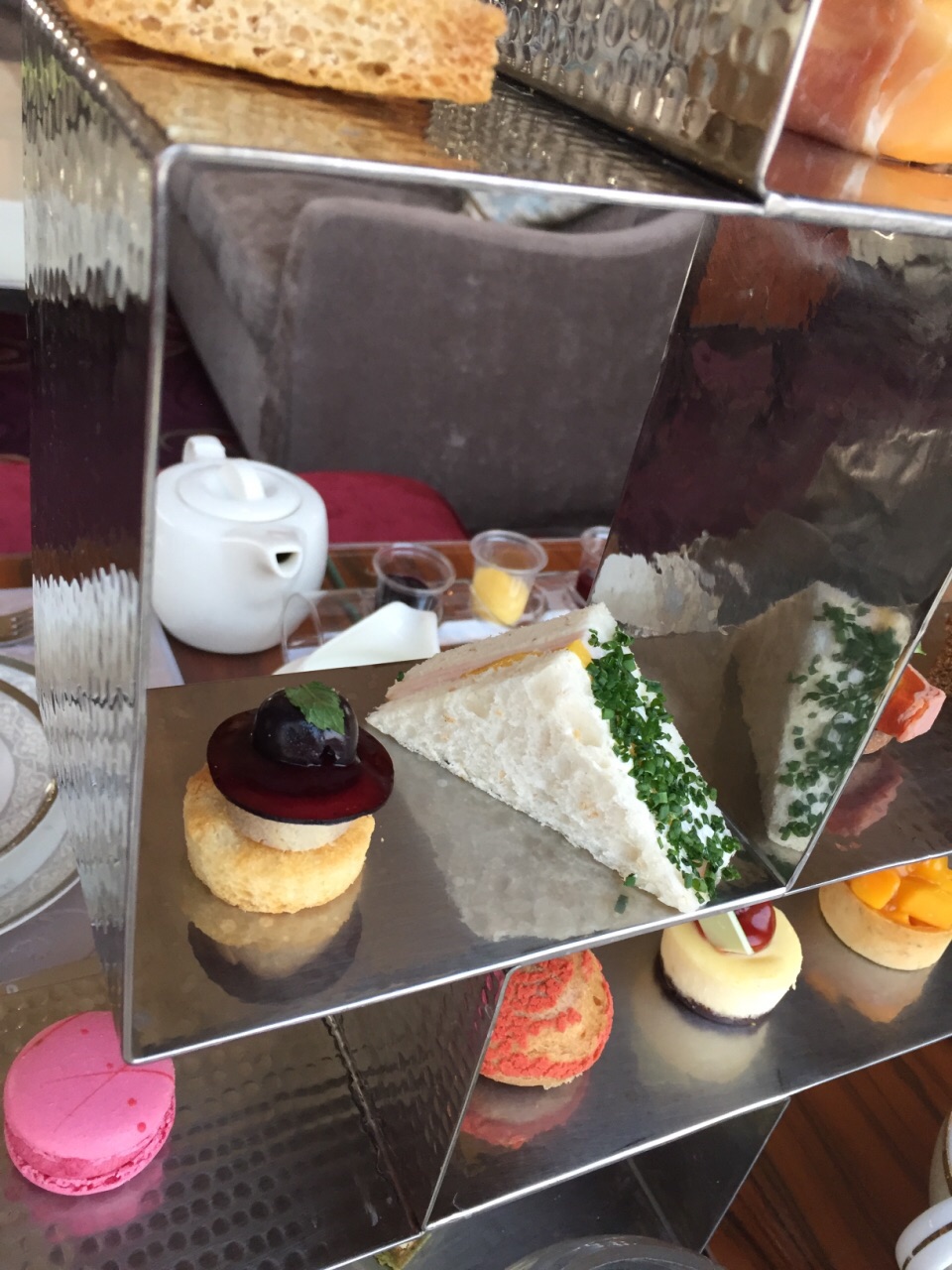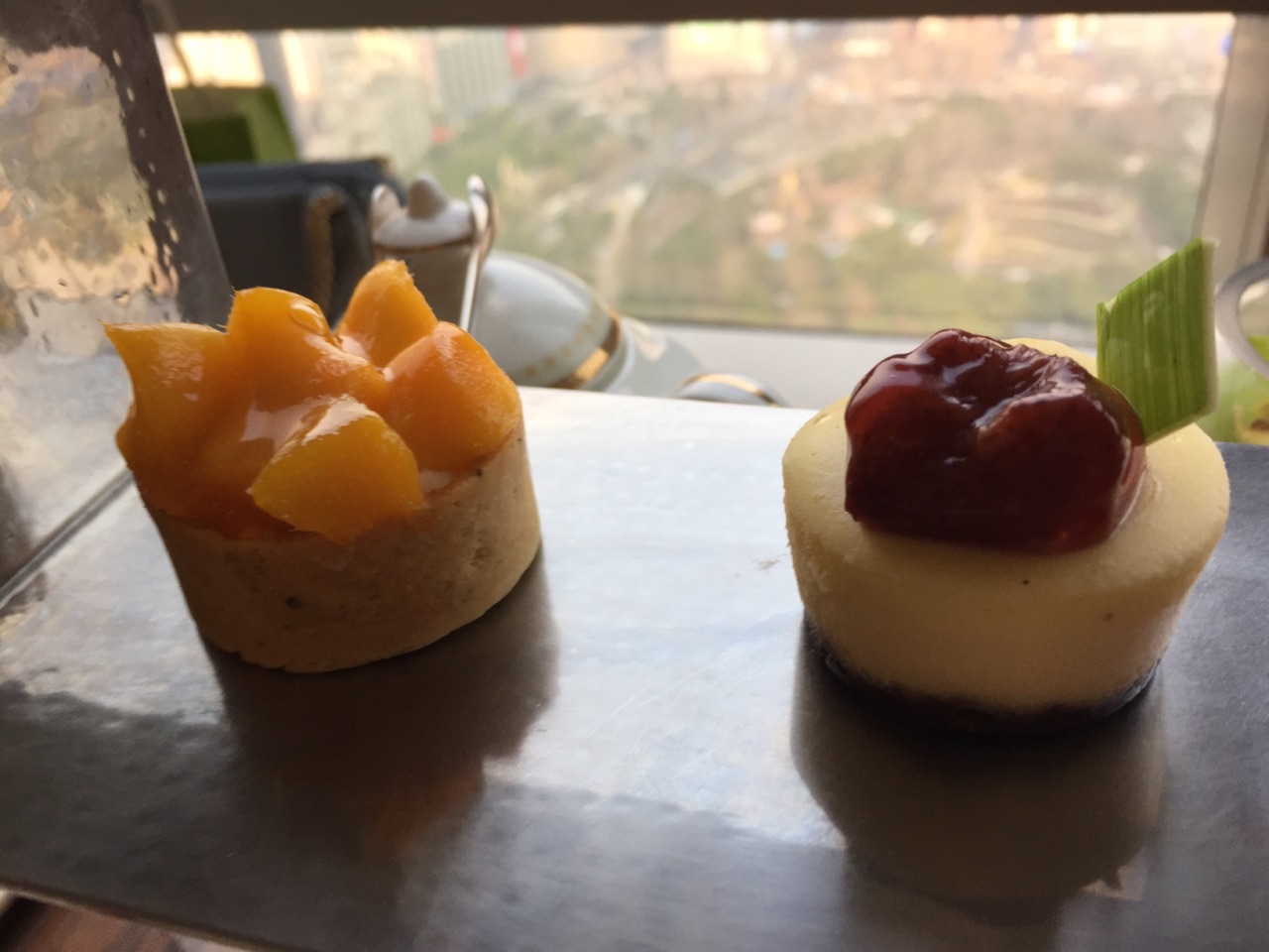 跟闺蜜点了份下午茶,除了茶水、点心还包含了一碗牛骨汤。量真心不少,虽然每样只是一点点,但是不仅没吃完,结果晚饭都省了。虽然咸甜搭配,我还是钟爱甜食;奶酪蛋糕不错,最好吃的是榛子味的泡芙。蜜瓜火腿很正宗。另外就是这里的视野不错,位于万豪的38楼,可以边品茶聊天,边看风景,还有现场演奏好听的钢琴曲。