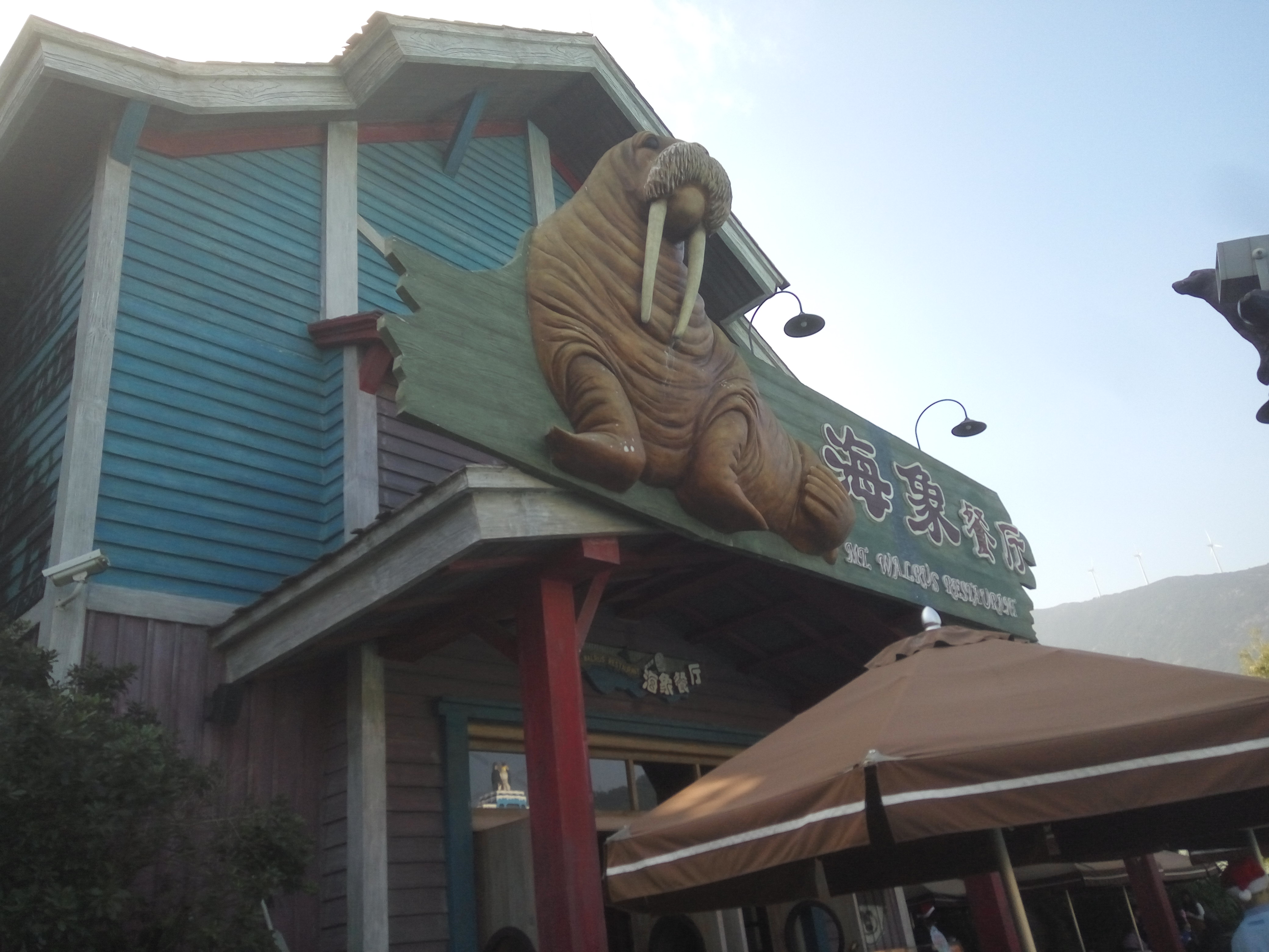在海洋王国第二天的午饭就是在海象餐厅解决的,因为从海象馆出来走几步就看到这个餐厅门上巨大的海象...