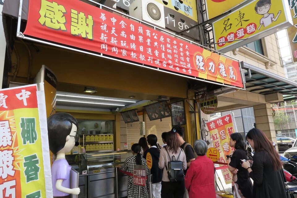 永远看见名东都在排队!好不容易等烤箱里端出一大盘来,却又不能立马卖,得等烫手的蛋糕变的稍凉才行,等啊等,终于开卖了,结果那么大一盘,两三个人就给瓜分完了!又得等......蛋糕做的非常的松软,所以看起来虽大,但真的每个人都可以吃下好大一块,也怪不得一大盘三两下就没了。买了原味以及黑糖味的,刚吃原味觉得超美味,但再吃黑糖的,就立马将原味比之下去,超好吃的,绝对推荐
