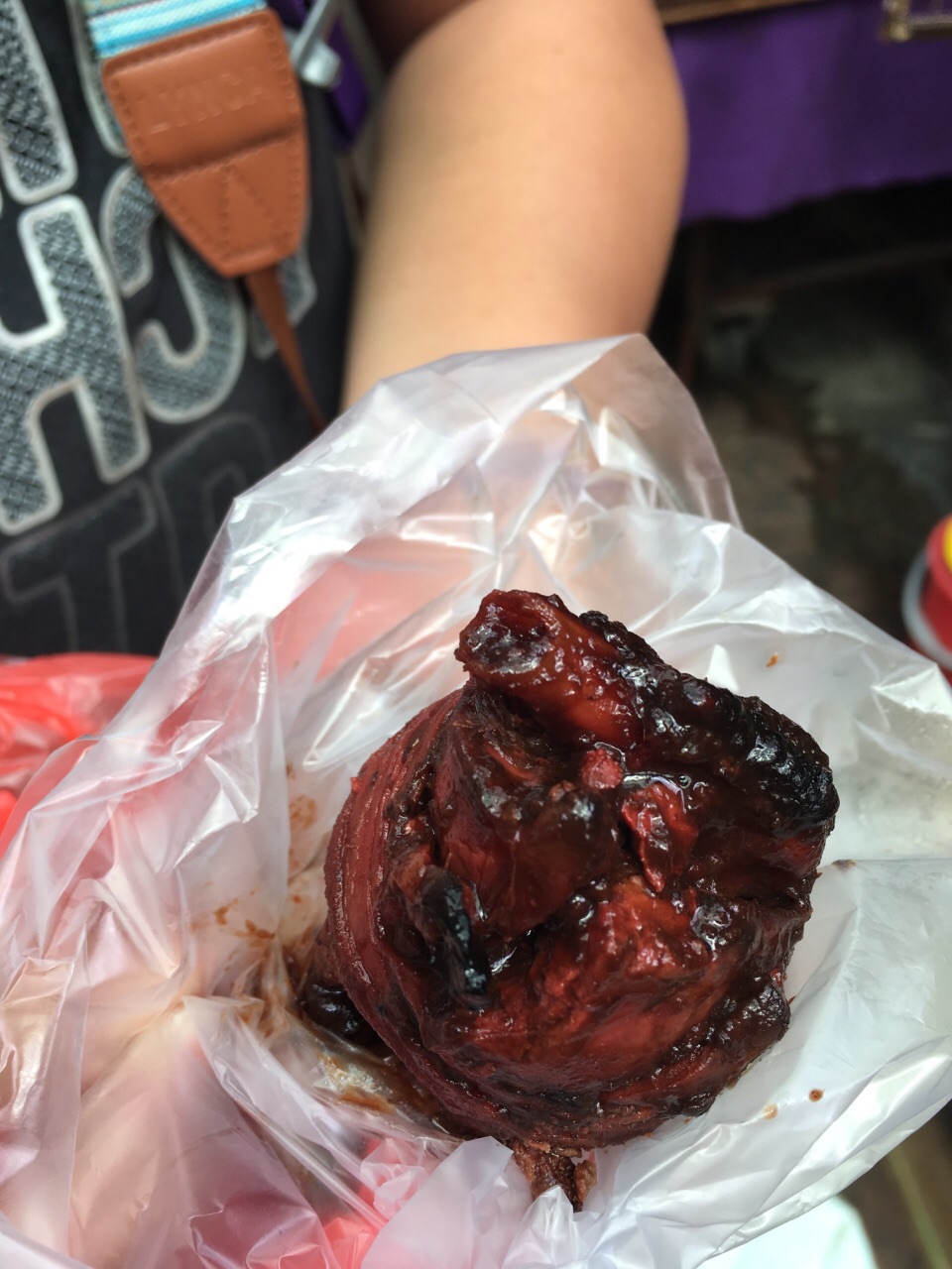 这里的鸭子最少要买半只,虽然不贵,但我们还要逛街带着不方便,就买了它们的鸭脚包来试一下味道,2...这里的鸭子最少要买半只,虽然不贵,但我们还要逛街带着不方便,就买了它们的鸭脚包来试一下味道,2rm一个,是鸭肠捆着鸭肝和鸭脚的一个组合。