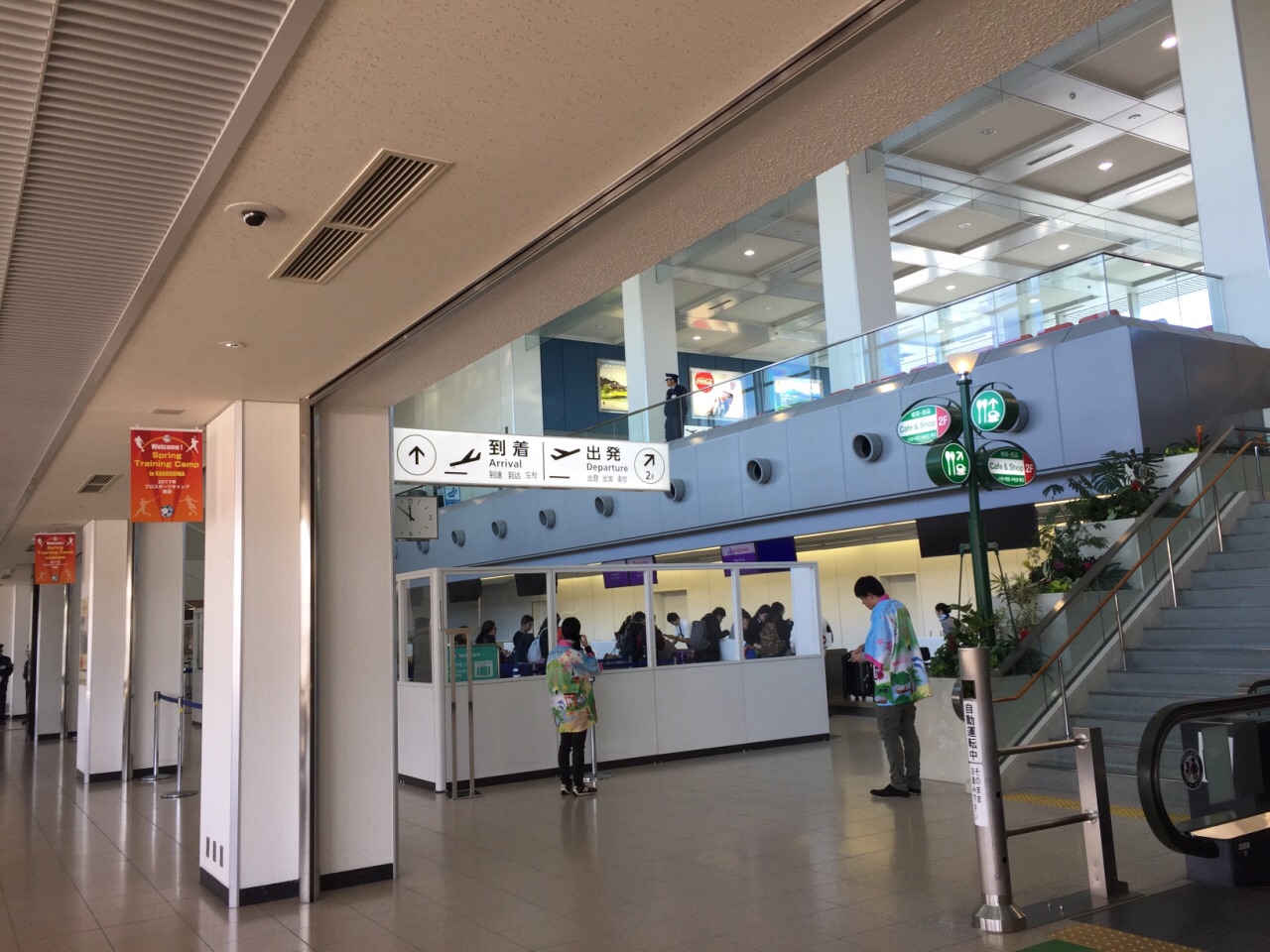 鹿儿岛机场国际航班候机楼非常小,国内航班那边比较多航班,一楼的值机柜台要先进行查包,取了机票以...鹿儿岛机场国际航班候机楼非常小,国内航班那边比较多航班,一楼的值机柜台要先进行查包,取了机票以后,然后再上二楼进行安全检查