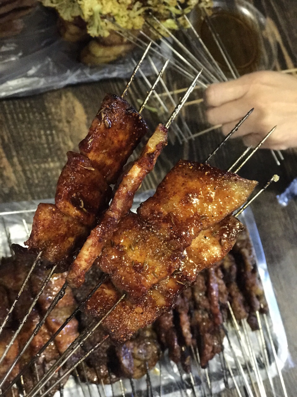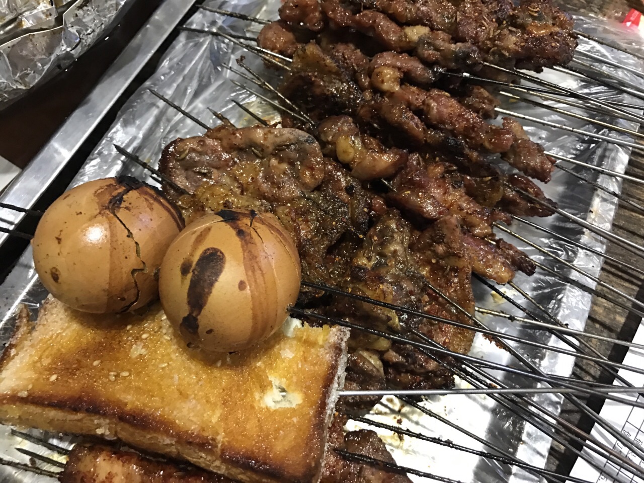 【老太太烧烤】 @洛洛食纪行 哈尔滨老道外的美食真的不胜枚举而且都是老店,一个胡同里起家,如今在哈尔滨多家分店想必一定是味道上让食客和美食老餮们流连忘返。 拿到菜单就感觉种类好全!特色也很多!在别家烧烤吃不到的东西很多,最喜欢烤五花肉配点蒜吃完美的parter ,烤干肠也很有味道还有烤黄瓜的清爽。 哈尔滨好多分店,有说曾经的胡同里出来的就只有这家。也有说老太太几个孩子各自开的分店,传说好多。