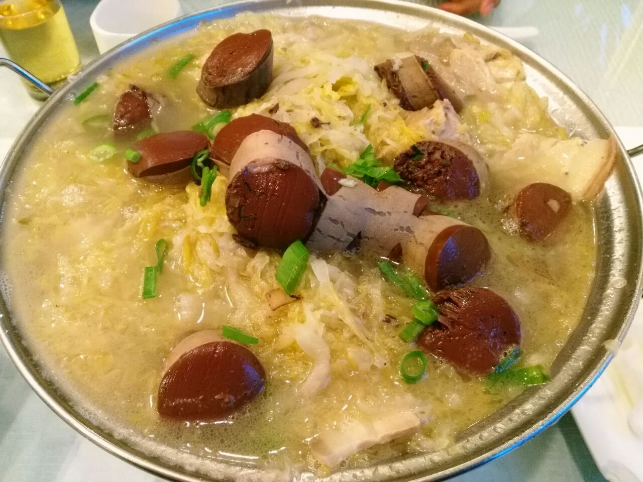终于要在走的前几天和朋友出来改善伙食,尝到了大连名菜! 杀猪菜,海鲜焖子,锅包肉,酸菜饺子。 杀猪菜和我预想中的不太一样,连朋友都说了,味道不太对,可能做的不太正宗吧,不过菜量是很大的。 海鲜焖子吼吼吃!焖子煎的脆脆的,淋上芝麻酱,香油,酱油,加上少许芥末,有些稍稍的呛辣的感觉,口感醇厚。 锅包肉好好吃啊!最爱!肉片裹上面衣炸的脆脆的,淋上调好的酱汁,口感酸酸甜甜的,超级有味道。 酸菜饺子,皮薄馅大,分量十足。 还有店家赠送的小麦刀切馒头片,味道有股粮食的甘甜味。 他家的菜量真的都很大,两个人使劲吃,那份杀猪菜就跟没动过一样。服务员姐姐态度也很好。来旅顺吃饭,强烈推荐他家。