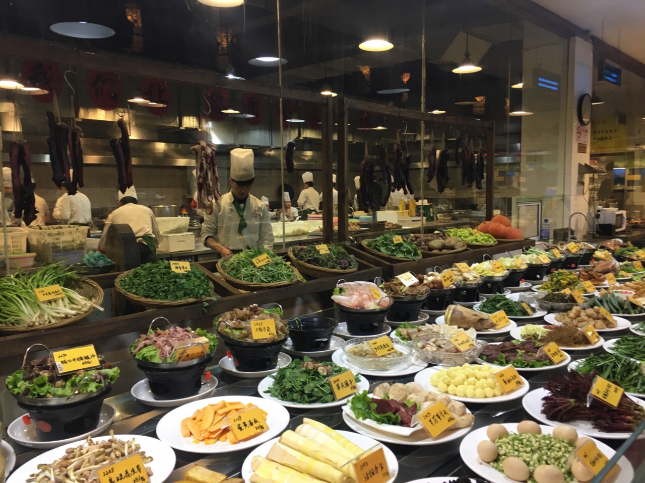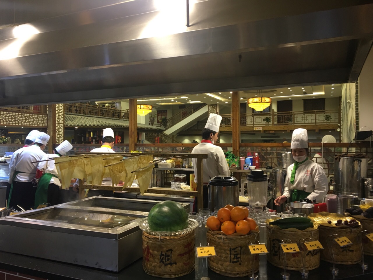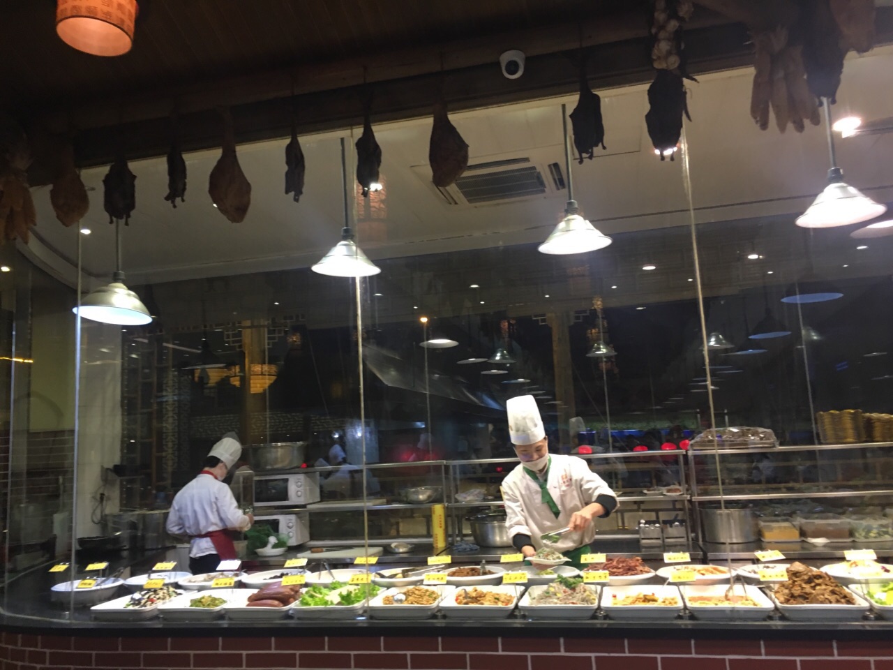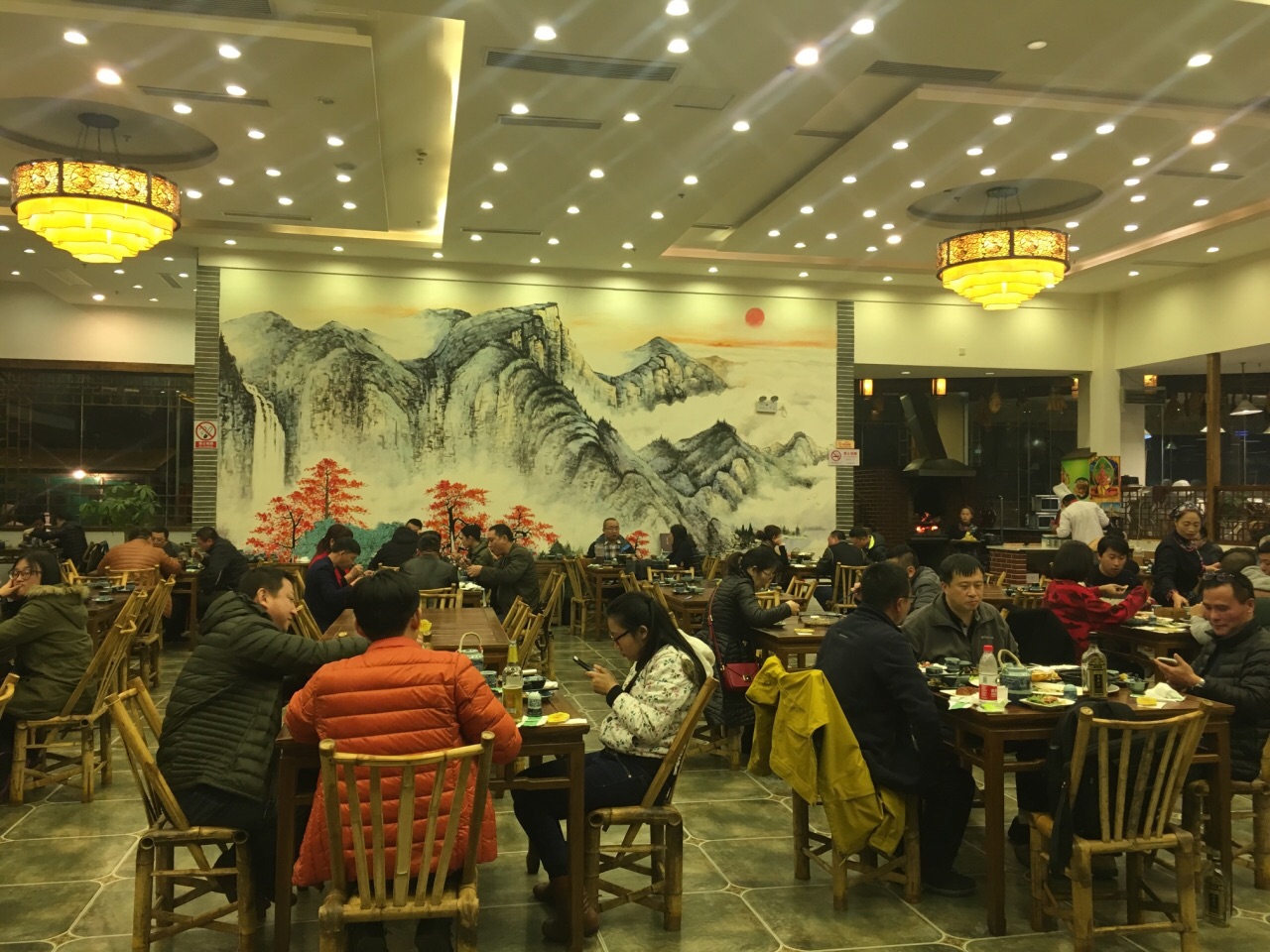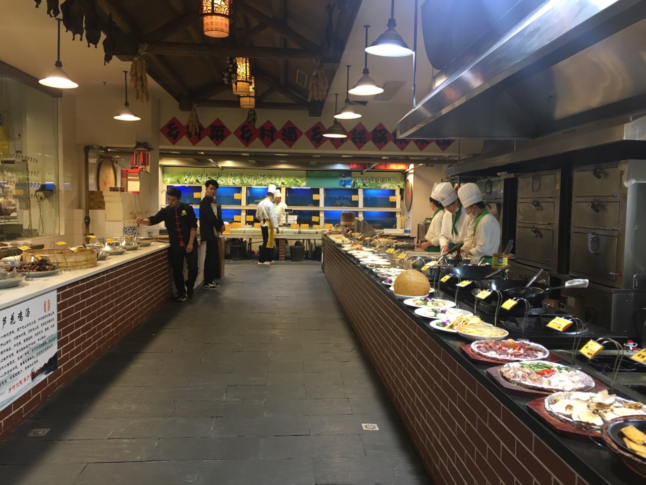 现在好像特别流行这种农家乐的吃饭方式,装修刻意的土土的。大堂像是在农村办喜事的感觉,热闹非凡,其乐融融。菜都是看得见的自选,以农家菜为主,很家常也很好吃。还有很多自酿的酒。喝酒用碗,很有一种大碗喝酒大块吃肉的感觉,粗放自在!