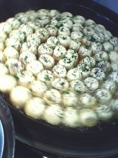金山生煎色泽金黄,外酥内软,汤汁浓郁,有些许小油,制作工艺和上海的小杨生煎差不多,里面还有锅贴