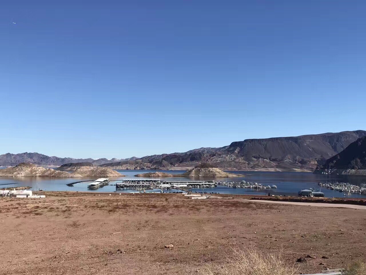 这是一个人工湖,据说是由于建胡佛大坝围蓄而成的。从拉斯维加斯开车大概40公里就到了,如果你要去看胡佛大坝那么米德湖就在途经点上。在公路边远看倒是风景不错,也可开车进入,一直开到湖边,但要收门票的钱的,因为我们有国家公园年票所以不要另付门票了,虽然也不贵,但里面其实没什么好看的,由于气候日益沙化,所以这个湖也在不断缩小,也可能是我们去的季节属少雨期,所以觉得风景一般,不去也不可惜。