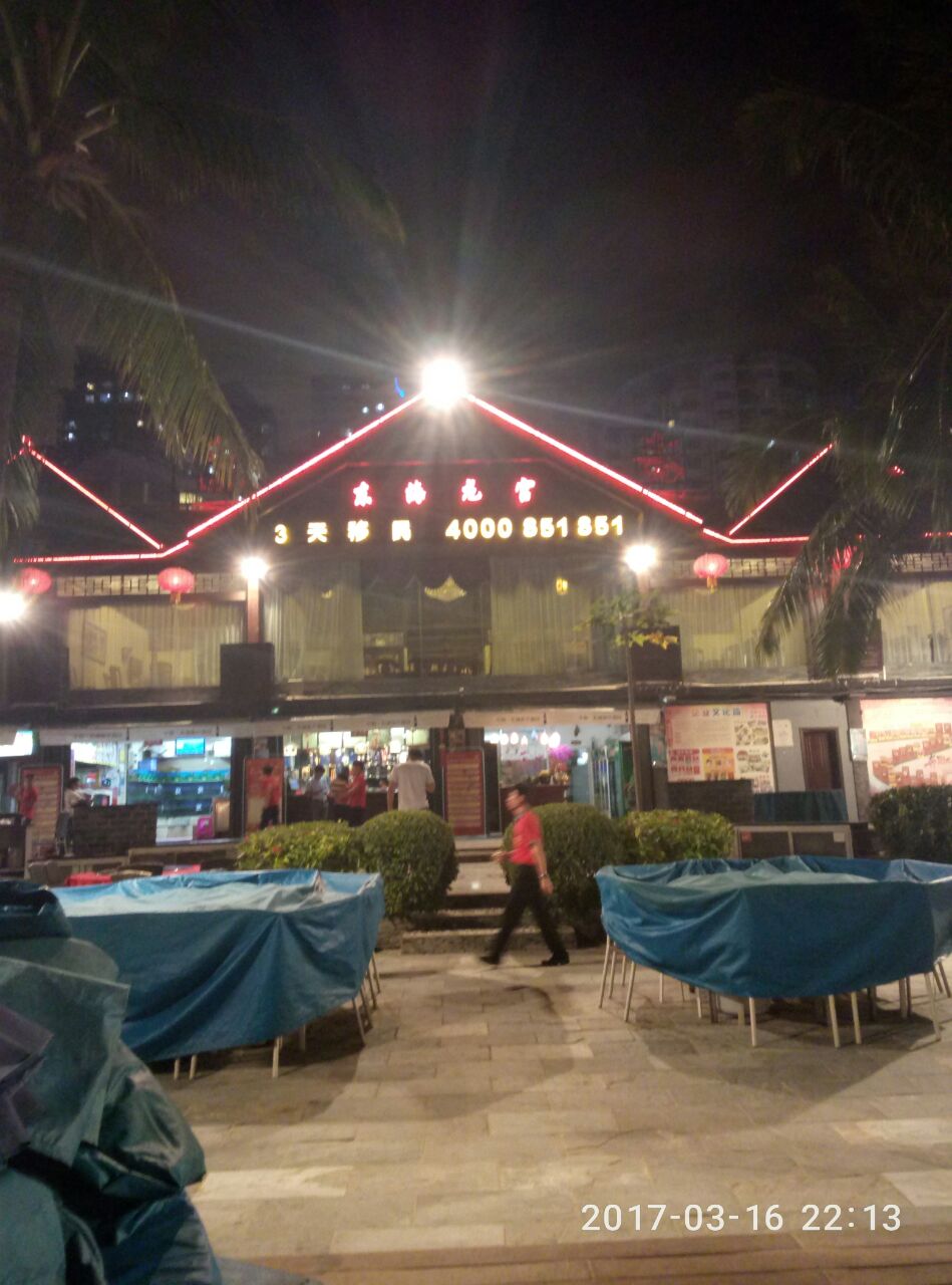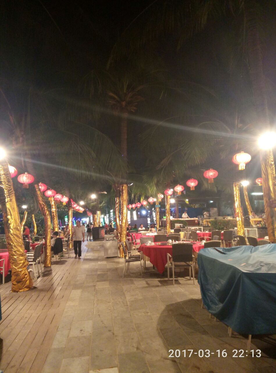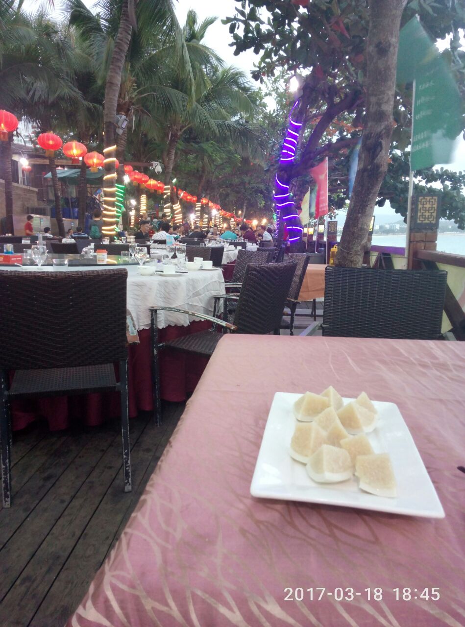 我来了三亚大东海四天:在这条沿海美食街就餐了三个晚上,他们一条街每晚都是爆棚的:好多一家大小,三五知己不醉无归!!这里实在太有情调了;一边听海浪一边听歌,这样食欲都会大振!如果你来三亚大东海,一定要在这里寻找美食!!