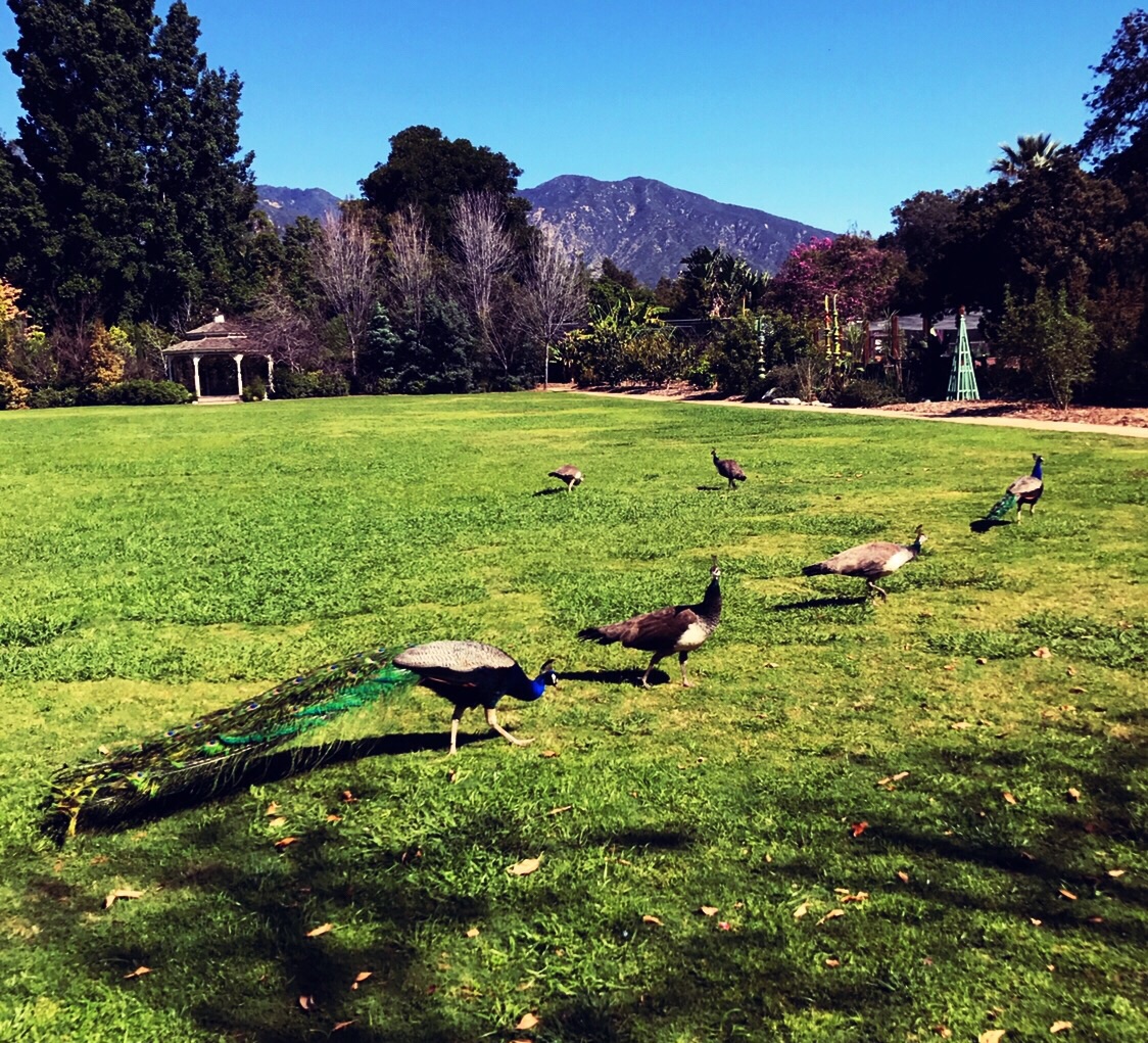 洛杉矶植物园,又名孔雀园,不仅有植物花卉,还散养了上百只孔雀 ,到处都是开屏的和栖息的,散步遛...洛杉矶植物园,又名孔雀园,不仅有植物花卉,还散养了上百只孔雀 ,到处都是开屏的和栖息的,散步遛弯的孔雀。。 倒也是蛮有意思