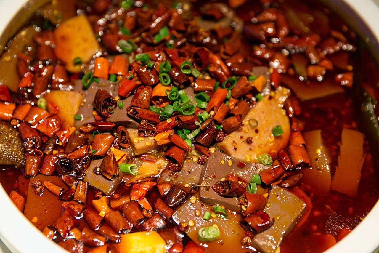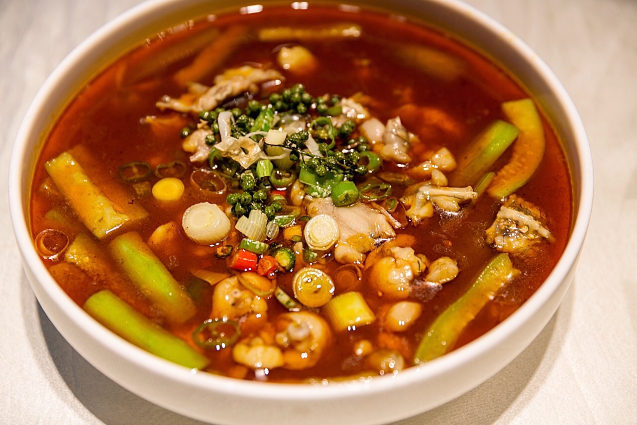 ...川菜馆子里也不能不点毛血旺,料的种类倒是挺多,包括了黄喉、百叶、午餐肉、豆芽等等,居然还有虾仁