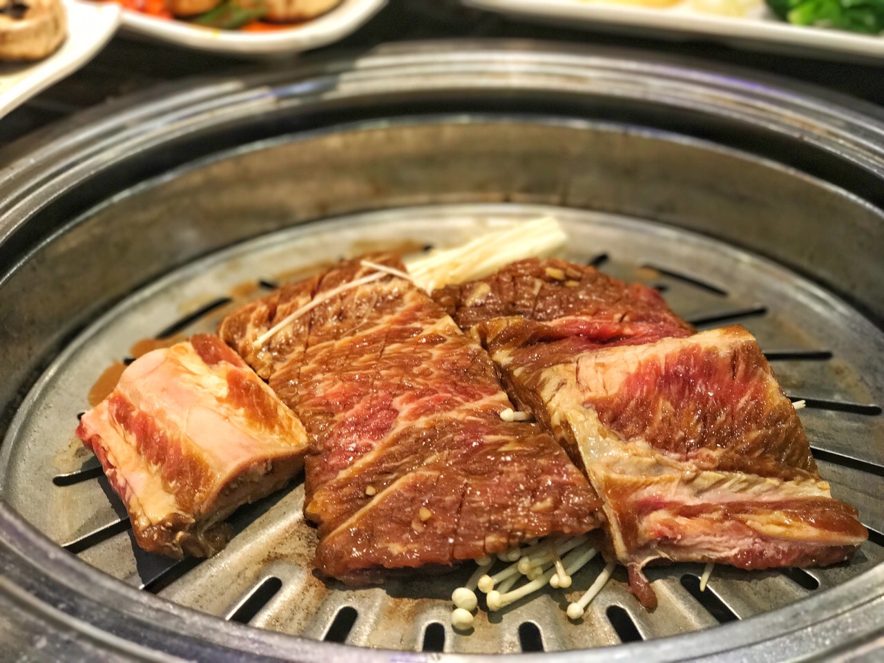 位置就在佳世客二楼,肯德基旁边,很好找。 小菜品种很多,要了n多土豆泥,是真爱。 点了五花肉,牛舌,调味牛排,肥牛。反正是吃了各种肉,各种好吃。喜欢五花肉烤好以后,厚实的感觉。 海鲜汤里面的东西太丰盛了,有一只大螃蟹,n 多虾和鱿鱼。海鲜很新鲜,汤汤味道也棒棒的。 冷面很正宗,内容丰富。 石锅拌饭,我朋友看完我朋友圈,点名让我请客哈哈。 这家服务也很好,全程很耐心。 不错的韩料