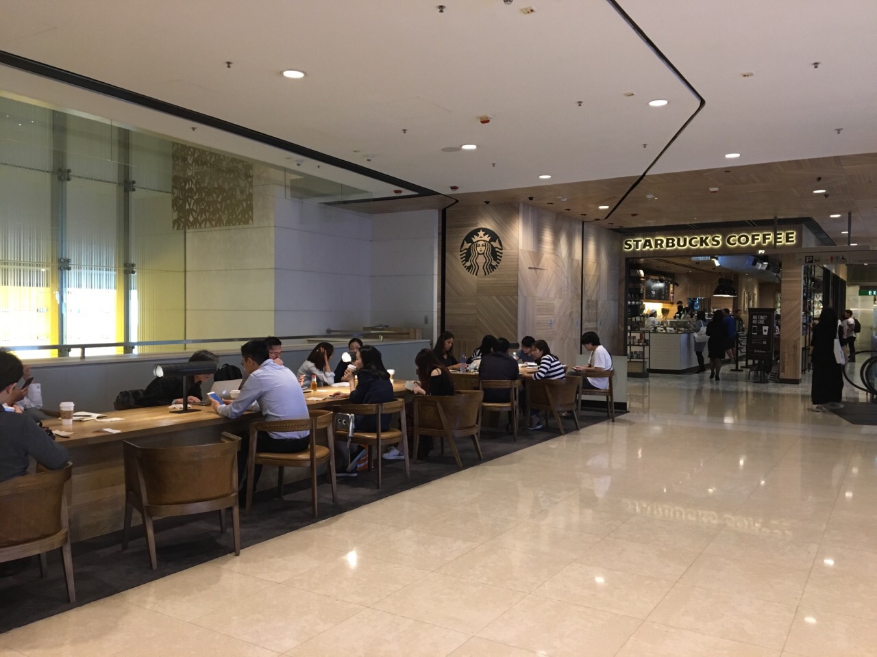 落座区其实算是在国金中心的公共区,开放式的,就划了块区域给星巴克,但正这样才显得宽敞不憋屈,光线也好