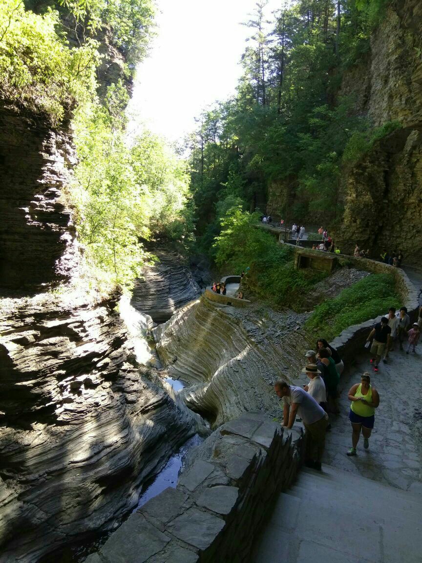 WatkinsGlen州立公园,地理地貌和国内的山啊水啊有所不同,其他的游览模式跟国内爬山涉水的模式都差不多,就是沿着修好的路走走看看。这次去的时候已经好久没有雨水,所以看到的水不是很大。里面人也不是很多,这点我还是比较喜欢的。