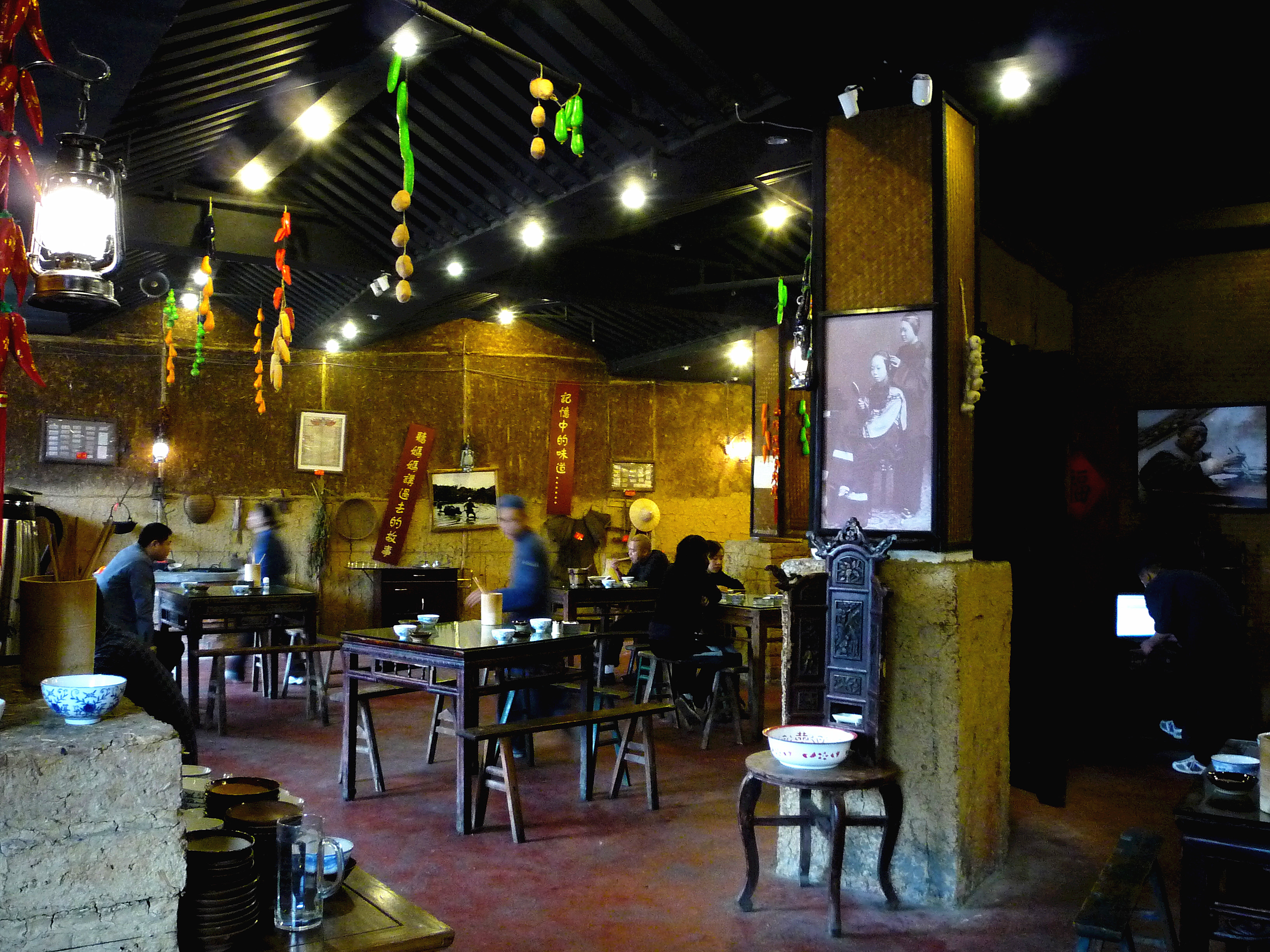 这家店去过几次。最早关注是因为四川电视台的推介,说这家店有一位喊堂的老师傅,而且还报道了这位师傅接待中外食客的节目,于是就去看看。我们去的时候师傅不在,据说年纪大了,做节目才出来。有年轻的堂倌喊堂:几位贵客到之类的吧。菜品算是地道的川味,凉拌鸡、苕皮回锅肉都是特色,总体还是不错的,店堂布置是乡土田园风。现在基本不去华阳这家店了,毕竟比较远,成都市内也有几家分店。菜品味道不错,有特色,也不贵。
