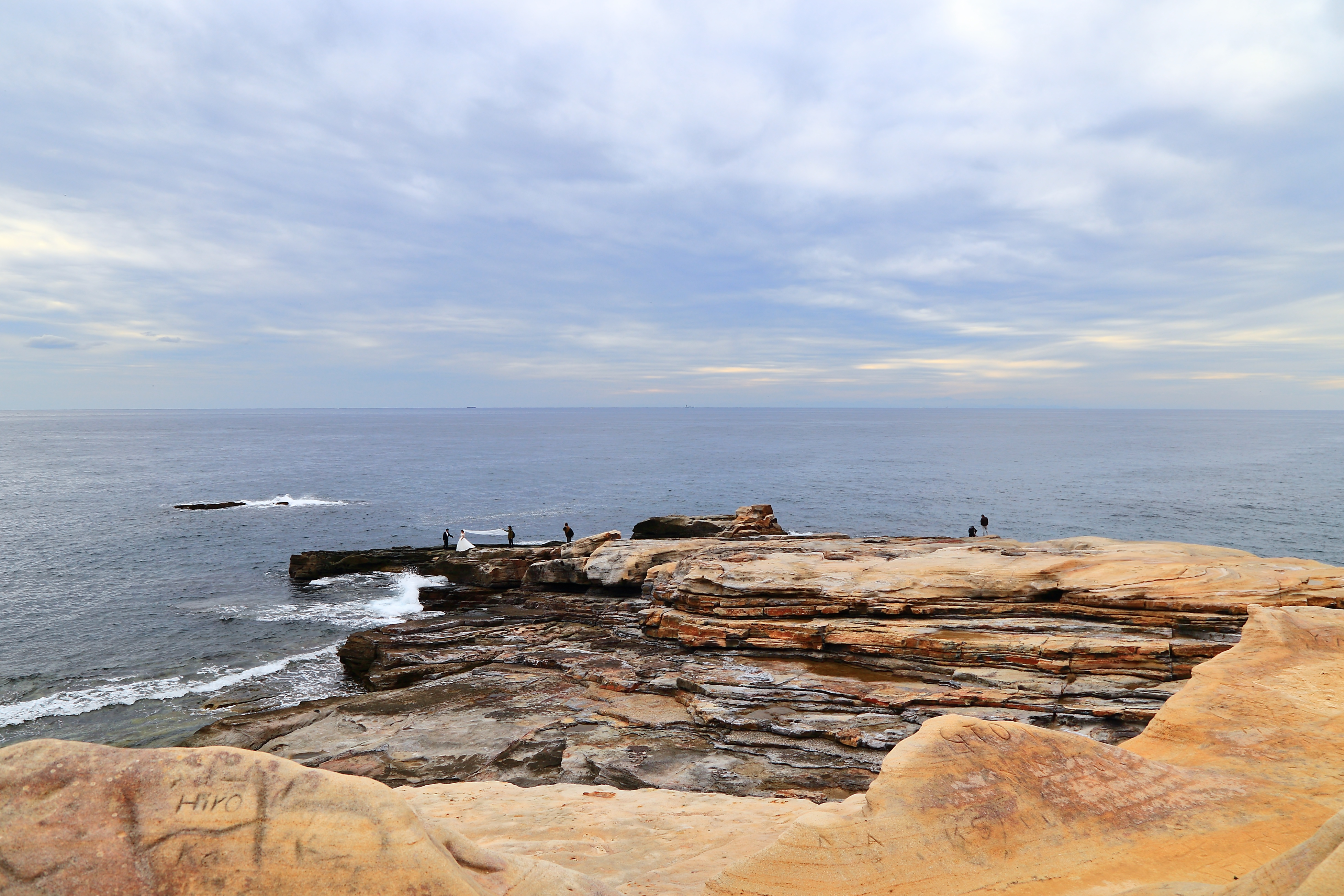 千畳敷是因为看起来像是很多层畳(榻榻米)叠起来的而得名,岩壁南北长达2km。上去之后你就会被大自然壮阔的一面惊呆。稍有点遗憾就是我们去时在列车上时还看着外面晴空万里,结果多变的天气,下午就多云了,天色略暗,拍出来的照片近光量少,后期修着有点麻烦,如果遇到万里无云的大晴天,这里的海水相当蓝,非常美丽。这里就像是大地与大海共同创造的艺术作品一样,海浪拍打岩壁的景象十分惊心动魄。站在千叠敷上可以观赏太平洋上的滚滚波涛,海面宽广无垠,极目四望,天水一色。近看,海岸上到处都是大大小小、层层叠叠的片状岩,它们饱经着亿万年海水的洗礼。来千畳敷需要从白滨车站搭乘公交车,在S-21站下车,票价440日元/人.