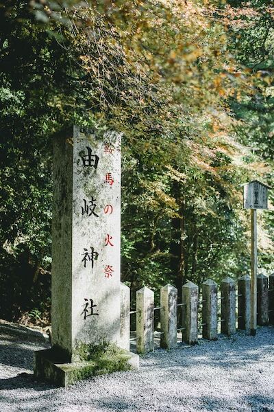 由岐神社位在鞍马寺的仁王门与本堂之间,这里最著名的是火祭与三棵参天的大神木,是京都三大祭祀之一由岐神社位在鞍马寺的仁王门与本堂之间,这里最著名的是火祭与三棵参天的大神木,是京都三大祭祀之一。每年10月22日正朔,人潮涌动,热闹非凡。
