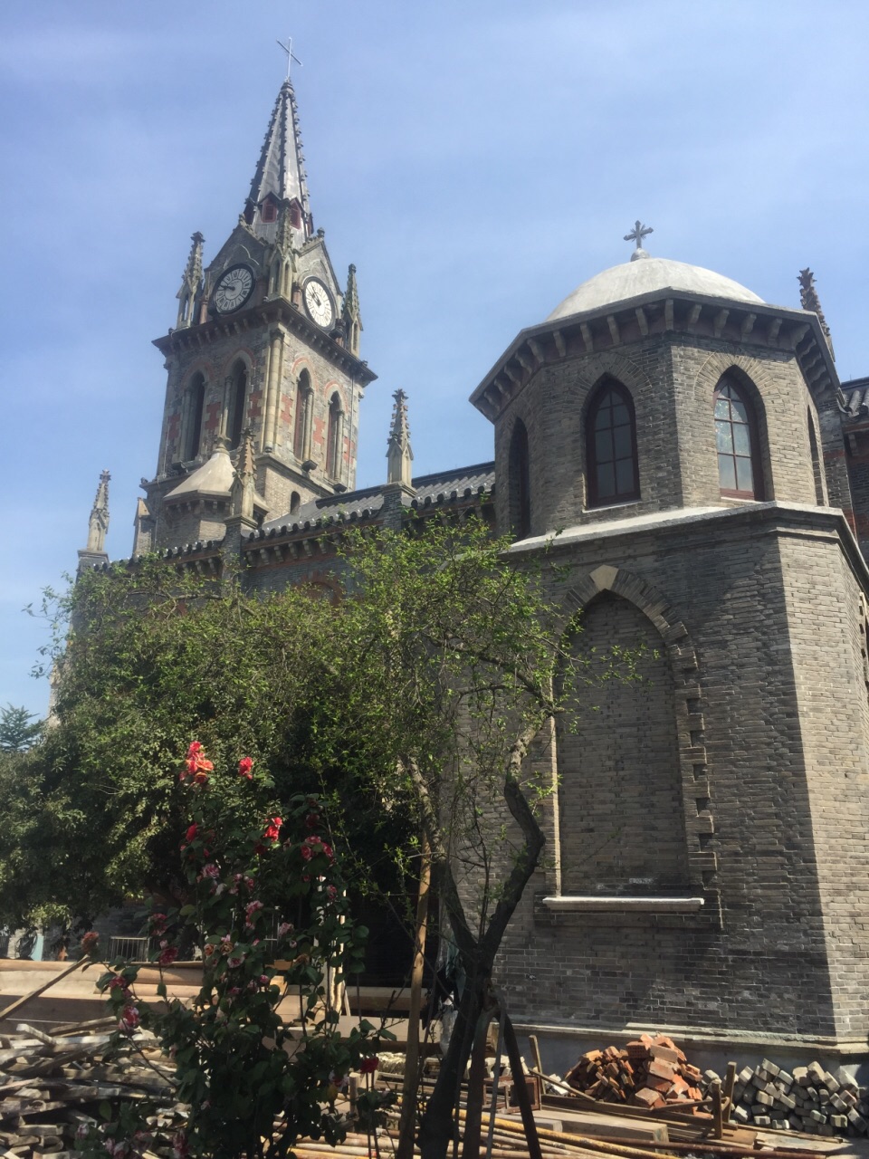 总体来说似乎小了一点,期待装修之后会焕然一新兴致勃勃的跑过去才发现周着在装修,整个教堂被包裹其中,有那么点可惜。进入教堂内部,就发现几个玻璃是彩色的,其他都是透明的,当下觉得如果都是彩色玻璃,想来一定更美!总体来说似乎小了一点,期待装修之后会焕然一新。