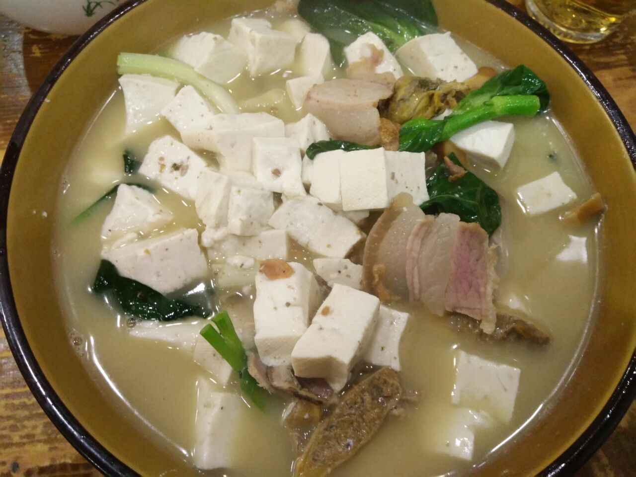 游玩苏州后坐长途汽车去往锦溪,到锦溪时已6点多,可能是淡季,晚上古镇没啥人,就挑了1家离住处近的观桥阁吃晚饭,点了蚌肉豆腐,白水鱼,奥灶面,老板娘人特好,厨子手艺也好,特别是奥灶面,那叫1个鲜美好吃据说那汤要熬一夜才成,赞1个